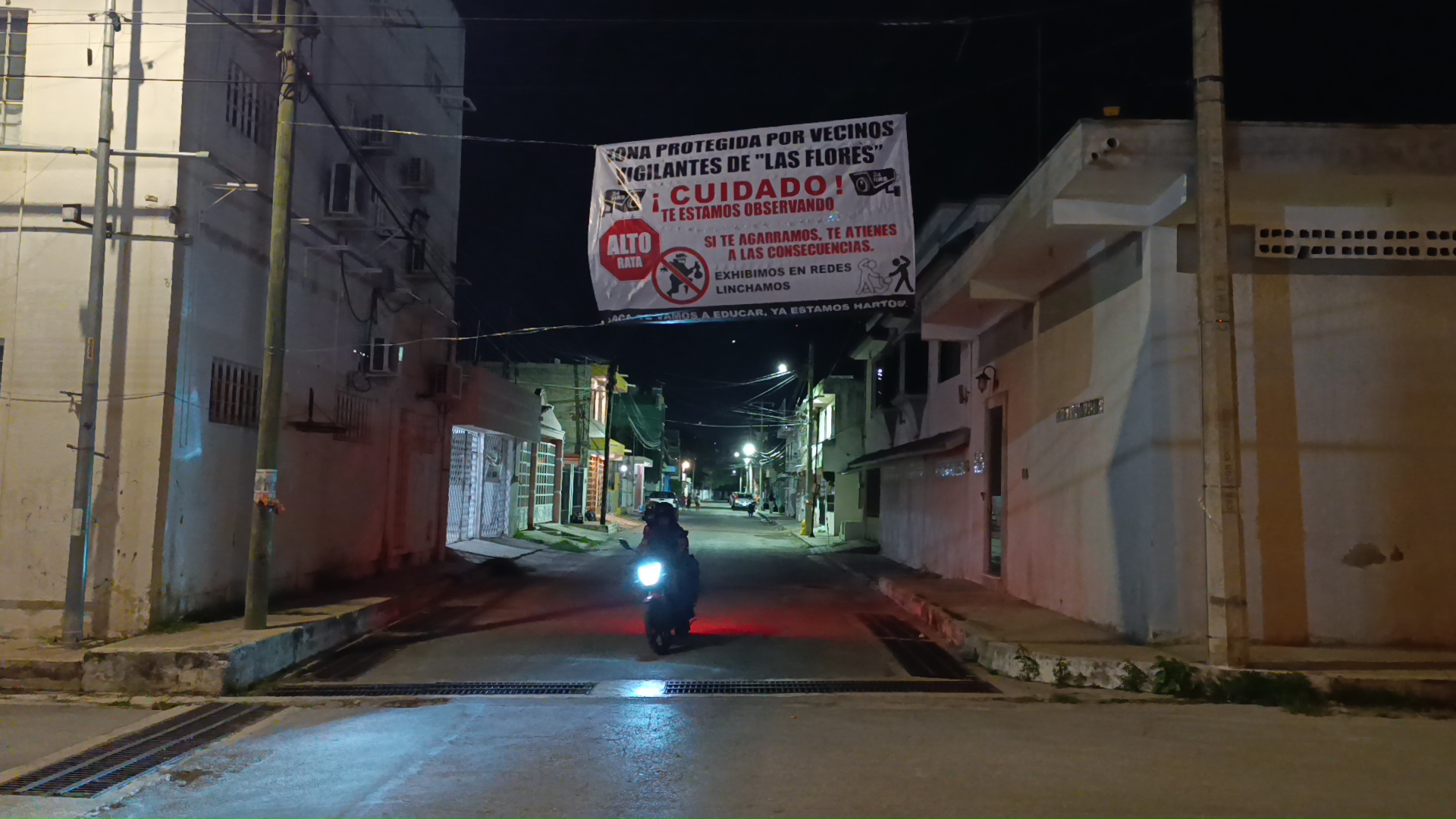 Ante Falta de Vigilancia Policíaca y Constantes Robos, Vecinos de Las Flores, de la Capital Campechana, Colocan Lonas con Advertencia a Ladrones