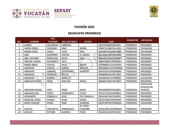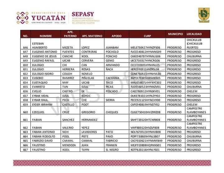 La Secretaría de Pesca y Acuacultura Sustentables de Yucatán dio a conocer el padrón de pescadores beneficiarios de apoyos para este 2025, se trata de una primera validación de acuerdo a las listas del programa “Bien Pesca”, por lo que los empadronados Podrán recibir sus 9,500 pesos.