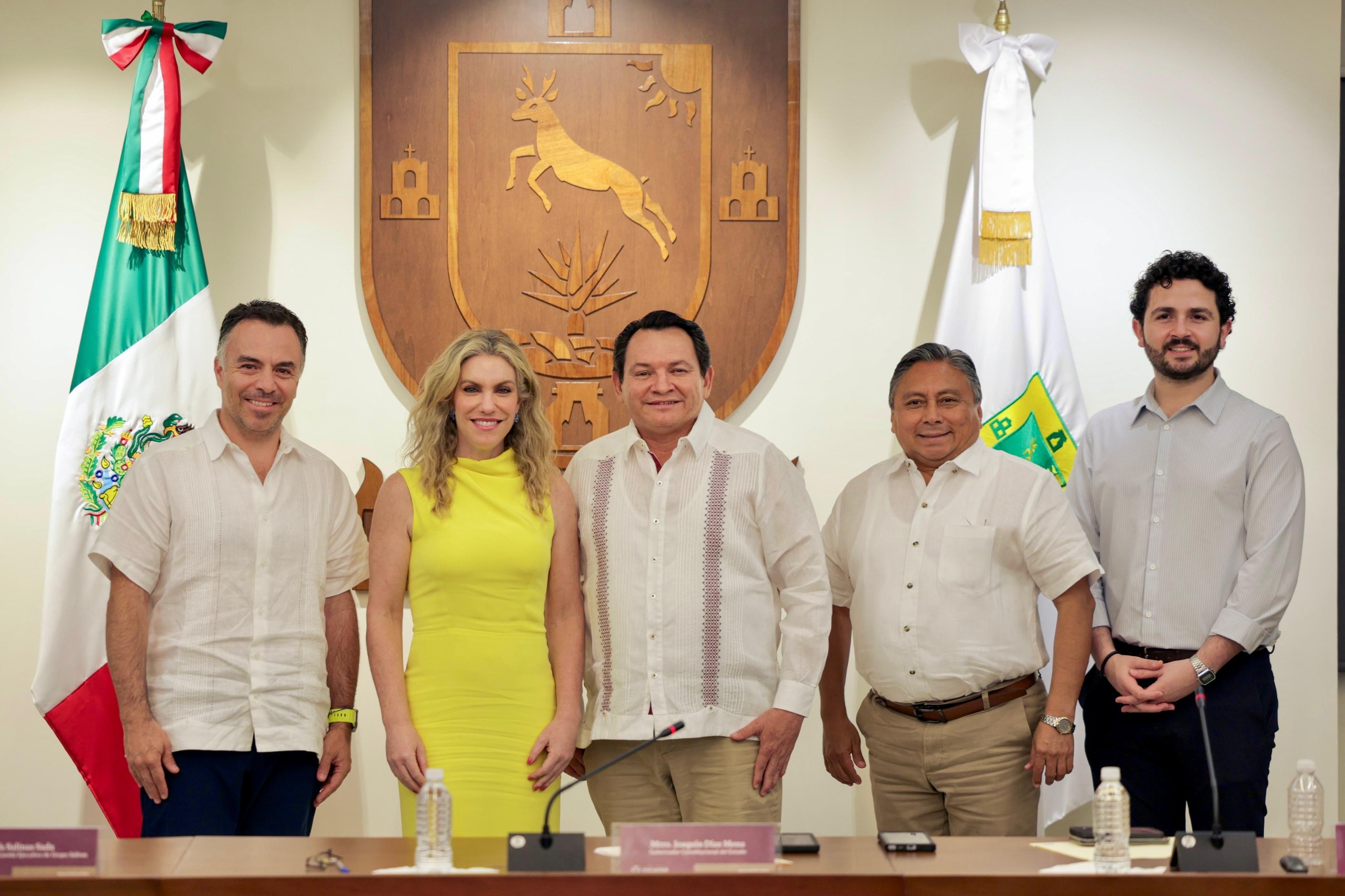 Estuvieron presentes en la reunión, los secretarios de Economía y Trabajo, Ermilo Barrera Novelo y de Educación del Estado, Juan Balam Várguez; y el director de Fundación Azteca, Antonio Domínguez Sagols.