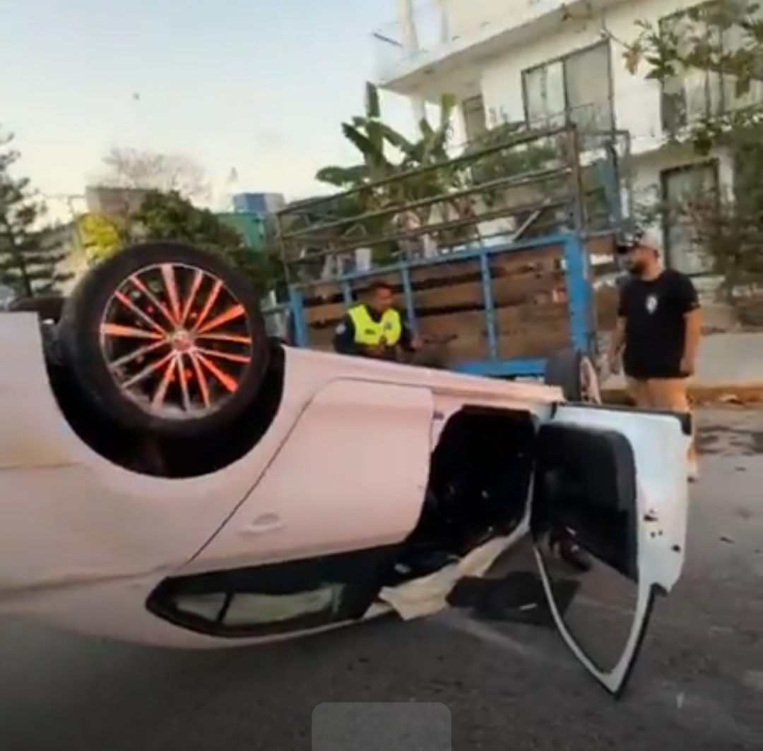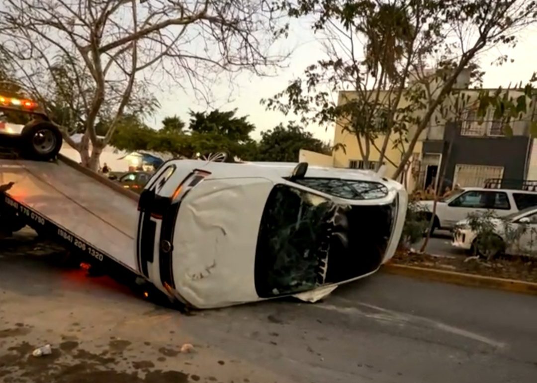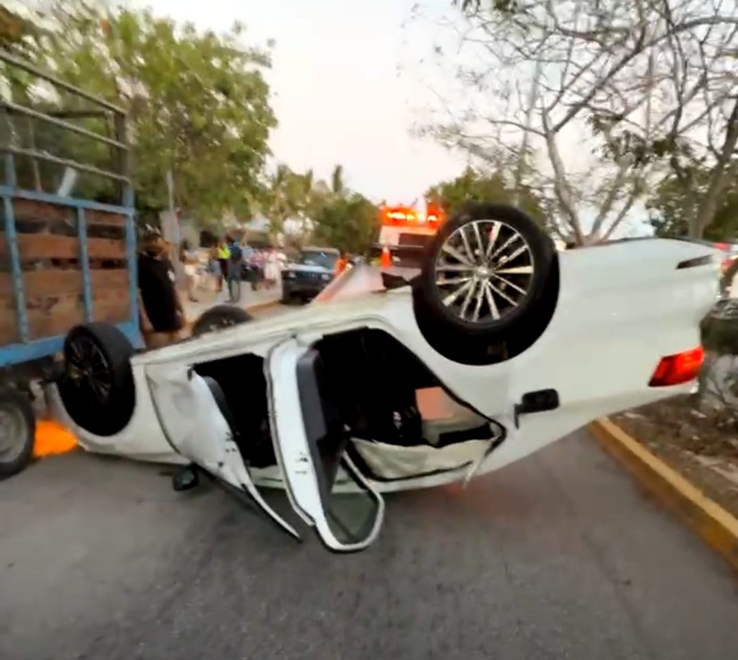 Alrededor de las 18:00 horas, vecinos del fraccionamiento Villamar I fueron alertados por un fuerte estruendo sobre la calle y al salir de sus hogares quedaron impactados de ver un automóvil de color blanco con llantas arriba.