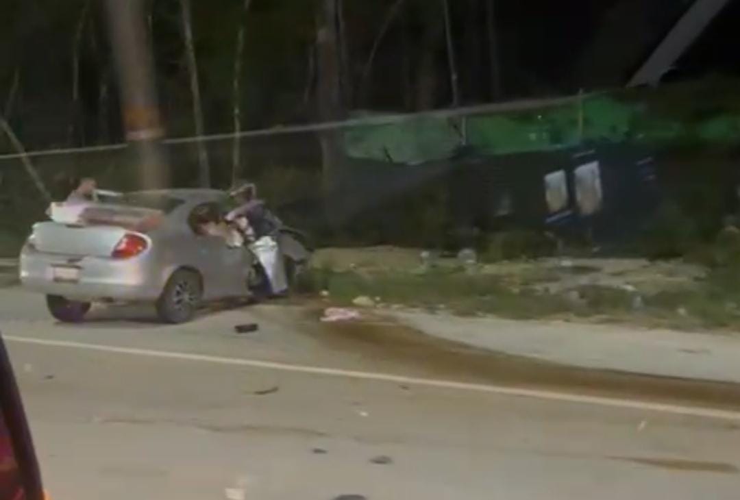 Aparatoso Accidente en Carretera al Aeropuerto de Tulum: Ocupantes se Dan a la Fuga Tras Chocar Contra Poste