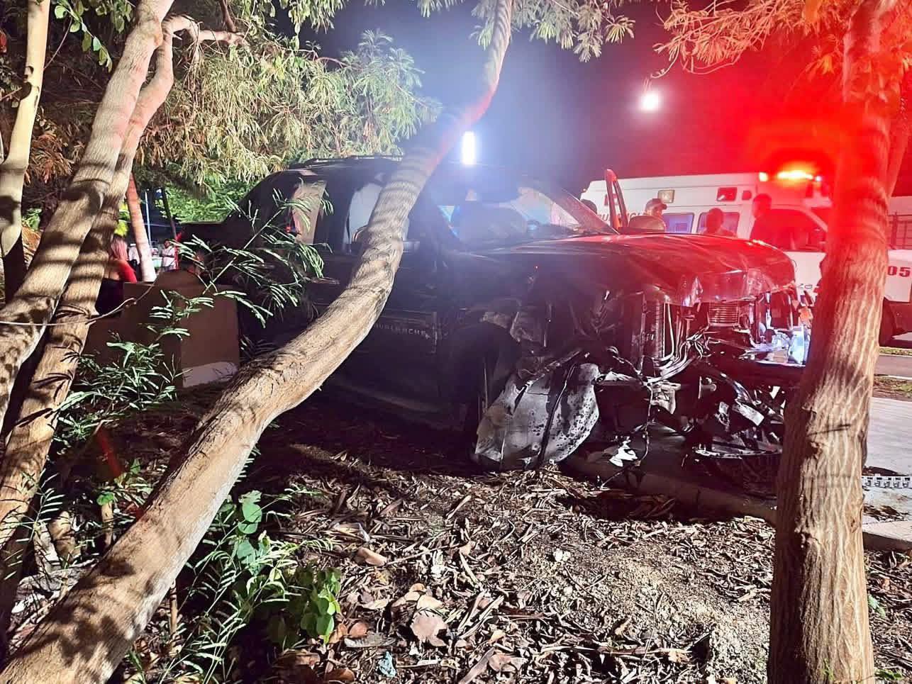 El exceso de velocidad y la conducción temeraria provocaron un aparatoso accidente nocturno en el Boulevard Bahía de Chetumal, donde un vehículo terminó destrozado tras impactarse contra unos árboles