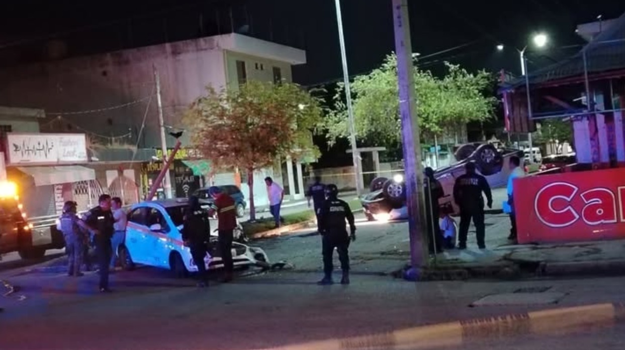 De acuerdo con datos preliminares, se refiere a que el conductor de la camioneta se encontraba circulando con sentido de norte a sur a exceso de velocidad y de manera temeraria; al llegar al cruce de la avenida Erick Paolo, no respeto el rojo del semáforo, siendo impactado por el taxi y provocando la volcadura. Por su parte, en el lugar trascendió que una joven de 21 años embarazada resultó lesionada.