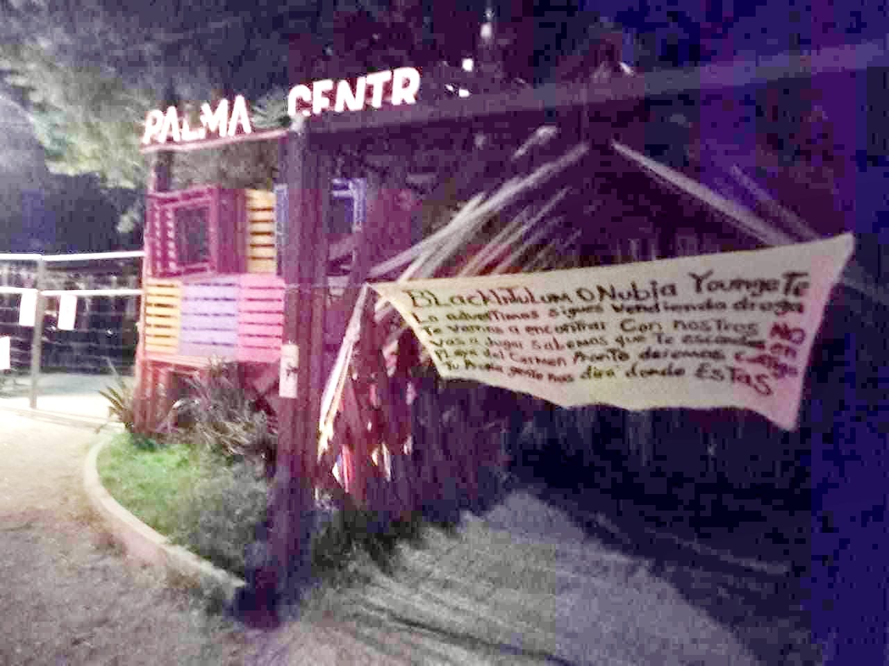 TULUM, 6 de agosto.— La madrugada de este miércoles, una narcomanta con un mensaje intimidatorio fue colocada en la entrada del centro social conocido como Palma Central, ubicado en una zona concurrida por turistas y locales. El texto contenía amenazas directas contra un grupo identificado como “Black Tulum” y su presunta líder, una mujer nombrada como Nubia Jong.