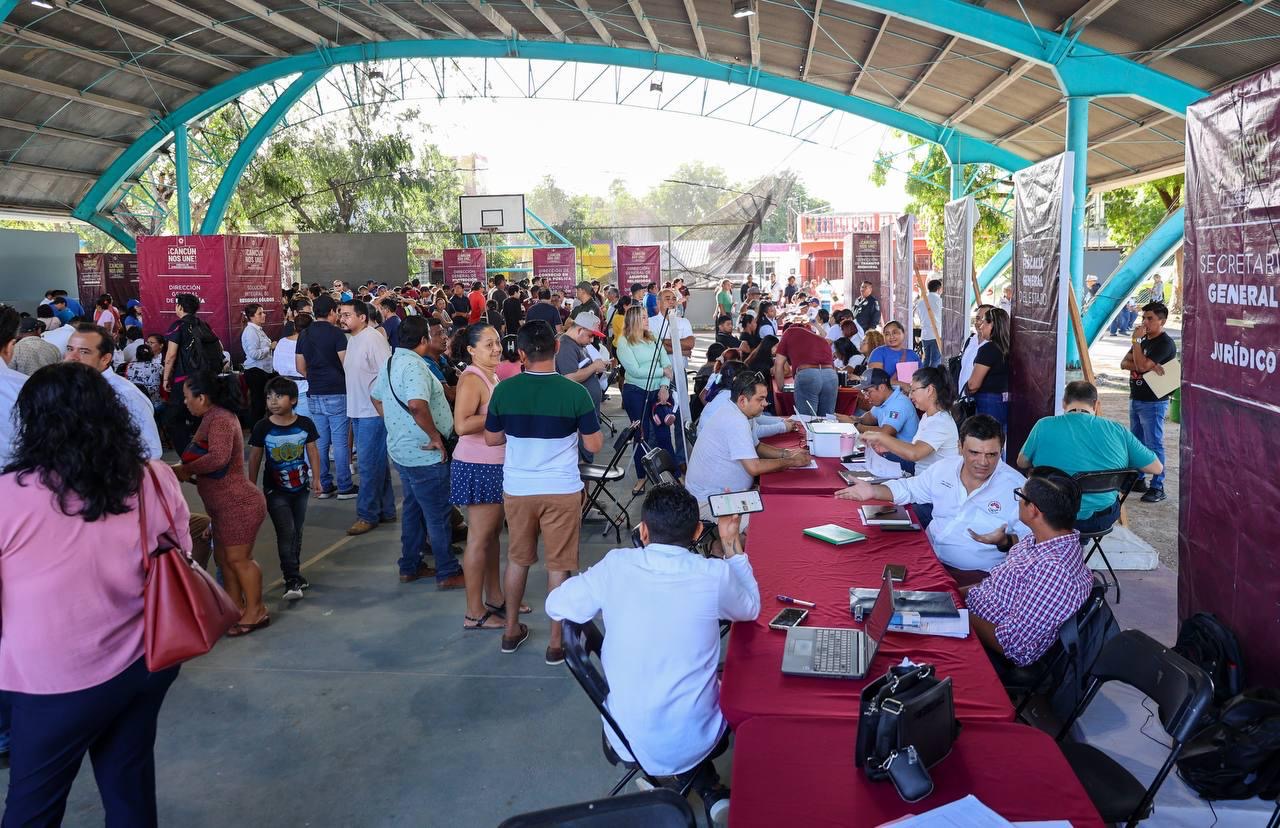 Cancún, Quintana Roo, 15 de Febrero de 2025.- Vecinos de colonias irregulares del municipio de Benito Juárez, aprovechan las jornadas de “Cancún nos une” para dar seguimiento a distintos temas en el proceso de su regularización.