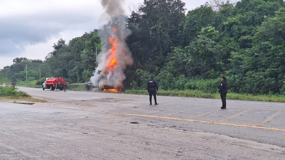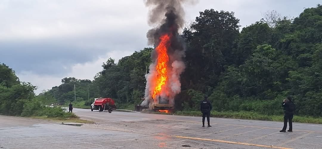 De acuerdo con los primeros reportes, la maquinaria llevaba varios días estacionada fuera de la cinta de rodamiento. Testigos señalaron que, de manera repentina, comenzó a incendiarse en la zona del motor, aunque esta versión aún no ha sido confirmada por las autoridades.