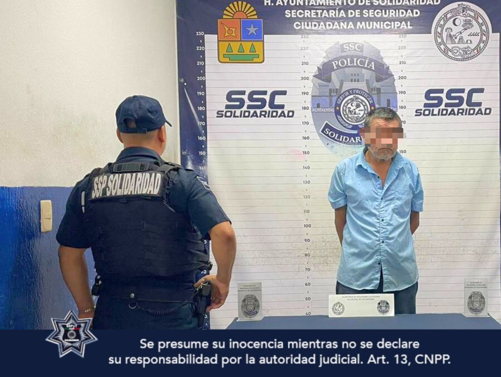 PLAYA DEL CARMEN, 15 de enero.- Elementos de la Secretaría de Seguridad Ciudadana Municipal de Solidaridad detuvieron a una persona de sexo masculino por desobediencia y resistencia de particulares, en el fraccionamiento El Petén.
