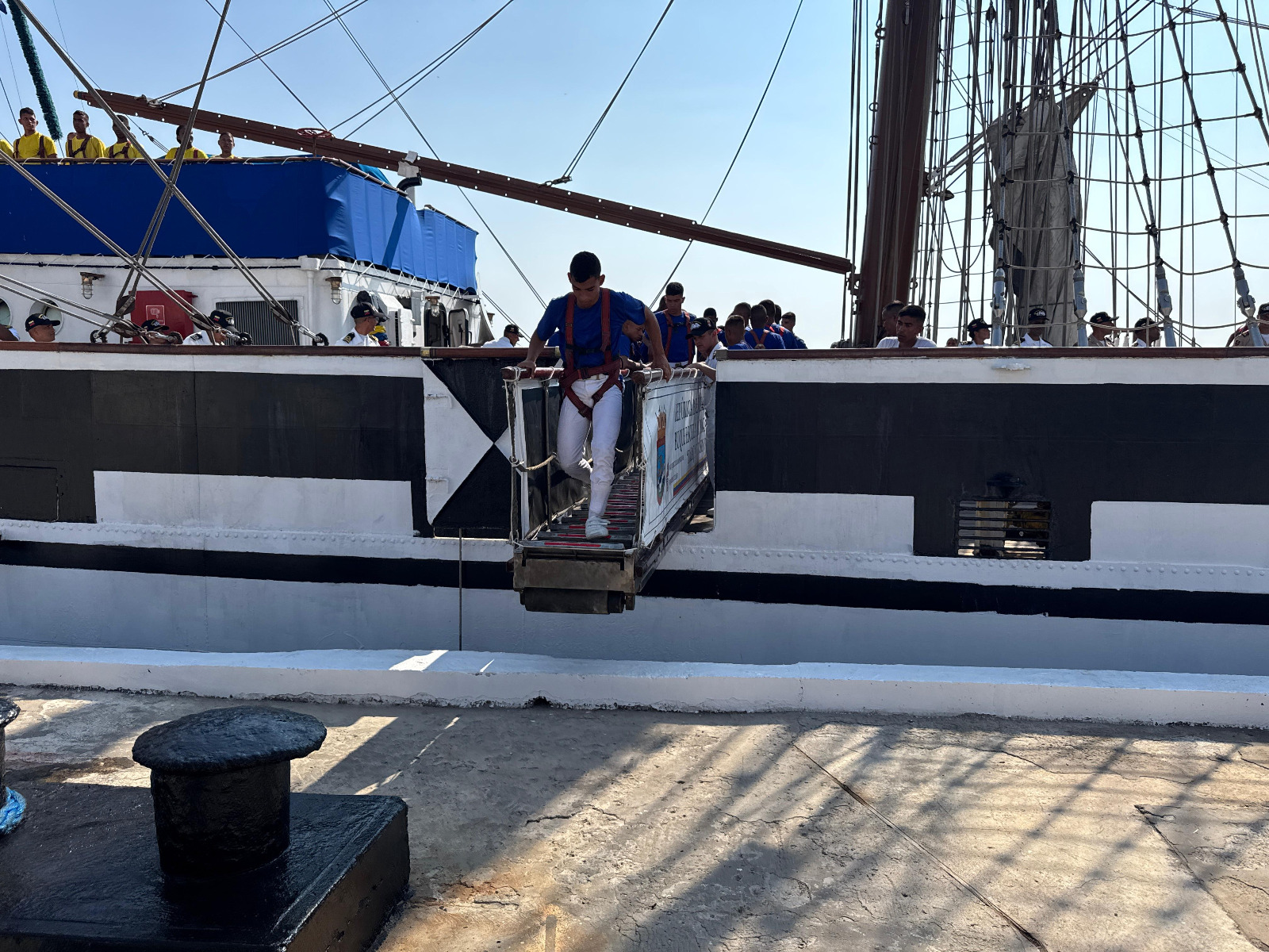 Como parte del protocolo naval, las autoridades fueron recibidas por el Capitán de Navío Ronald Briceño Huerta, Comandante del Buque Escuela “Simón Bolívar” y posteriormente realizaron un pequeño recorrido a bordo del mismo.