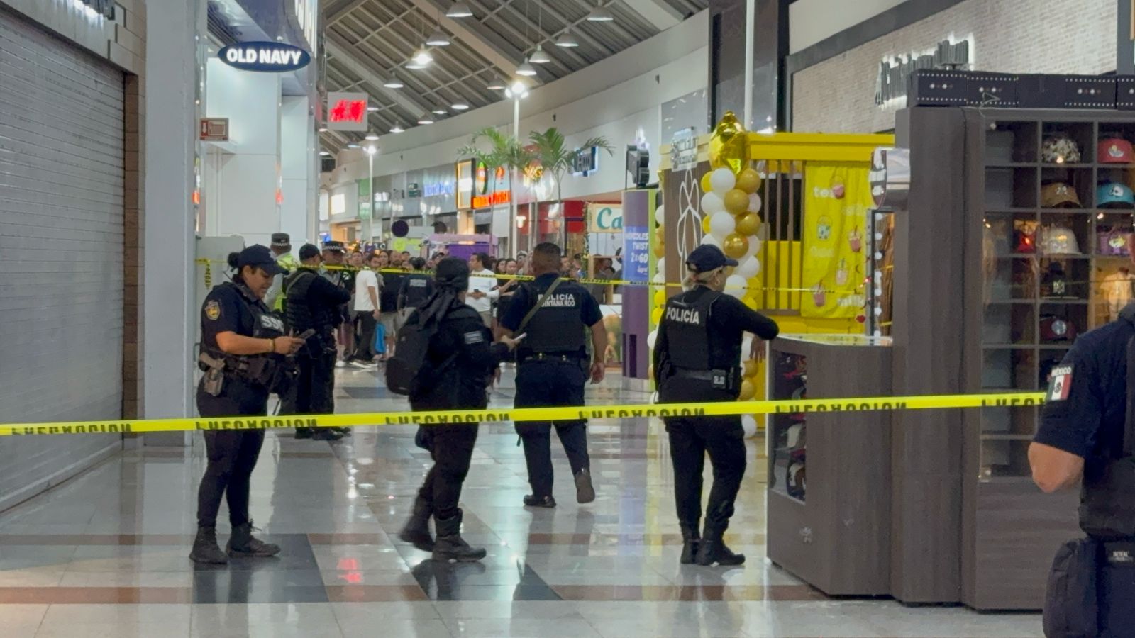 CANCÚN, Q. Roo, 16 de marzo.- Una fuerte movilización policiaca se desató en Plaza Las Américas luego de que un grupo de delincuentes asaltara con violencia la joyería Bizzarro, ubicada junto al restaurante Sanborns, en la Supermanzana 7.