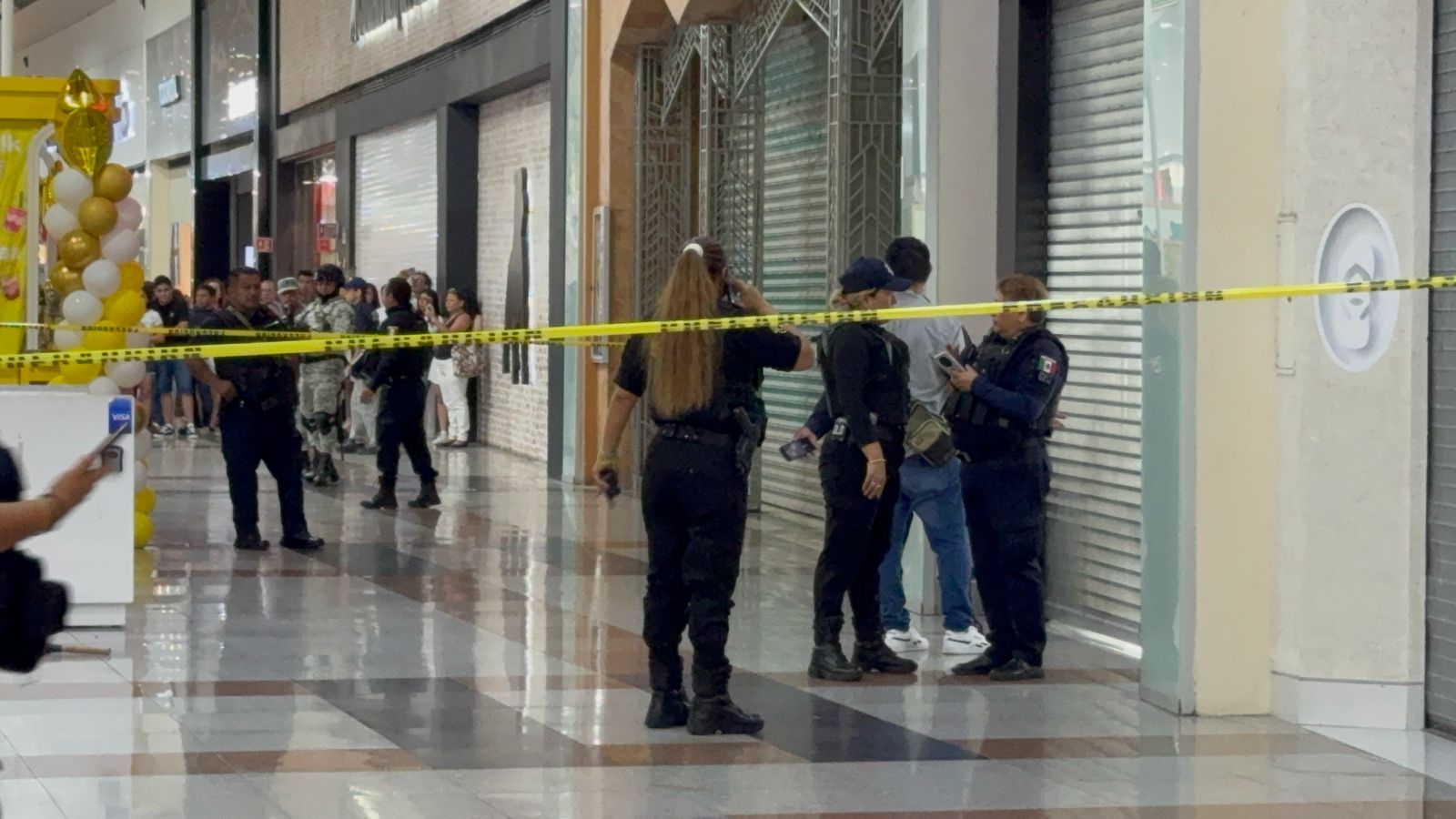 Durante el atraco, los asaltantes realizaron detonaciones de arma de fuego, lo que generó pánico entre clientes y empleados del centro comercial.