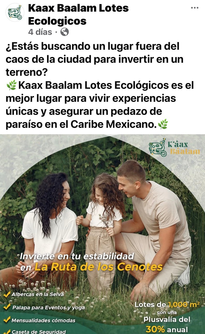 Kaax Baalam (también anunciado como “La Granja”) – 74 hectáreas. Ubicación: Ruta de los Cenotes, Km. 27. Propietario: Alejandro Ayala. Forma parte del catálogo del Top Ten de Boix, continuando la oferta de terrenos selváticos como supuestos “ecodesarrollos” comerciales.