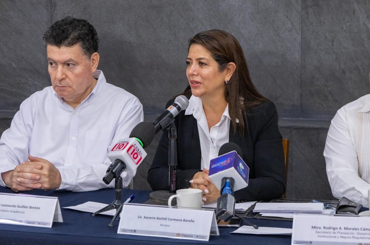 Durante la conferencia de prensa, enfatizó que su propósito es sumar esfuerzos y dar continuidad a los procesos de gestión, docencia y vinculación, al mismo tiempo que refuerza los valores institucionales como la inclusión, no discriminación, paz, igualdad sustantiva y sostenibilidad.
