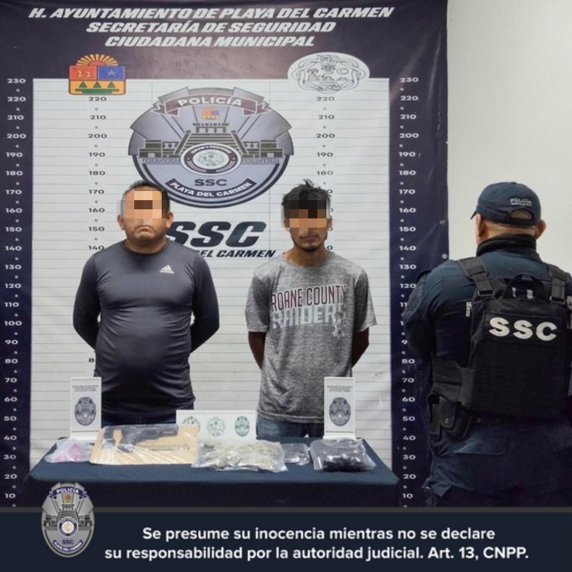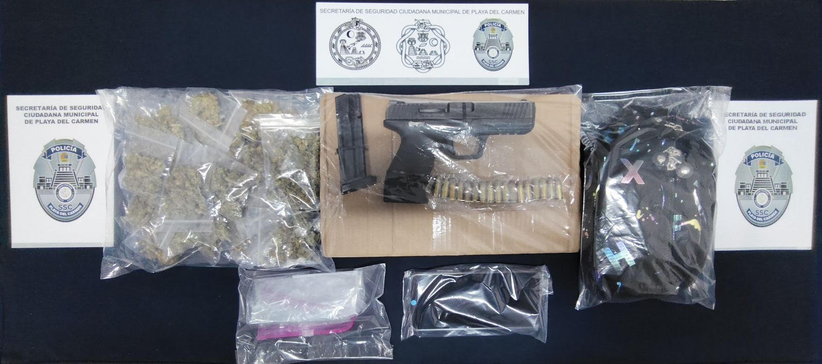 Playa del Carmen, a 01 de julio de 2025.- La Secretaría de Seguridad Ciudadana de Playa del Carmen aseguró a dos personas por presuntos delitos contra la salud, con un arma de fuego abastecida, en la colonia irregular Valle Verde.