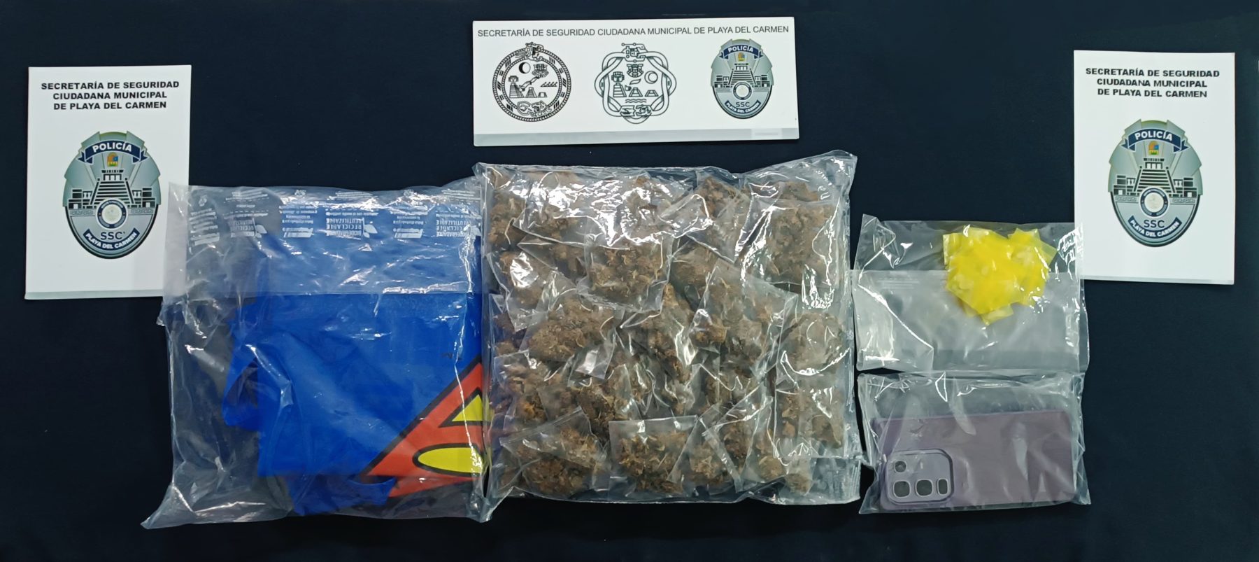 Durante el recorrido, los policías observaron a un sujeto que manipulaba bolsitas con aparente droga, por lo que se procedió a una inspección conforme a protocolo. El individuo fue identificado como Eduardo N., de 29 años de edad, originario de Campeche, a quien se le aseguraron varias dosis de vegetal verde con las características de la marihuana, así como envoltorios con una sustancia cristalina similar al narcótico conocido como cristal.