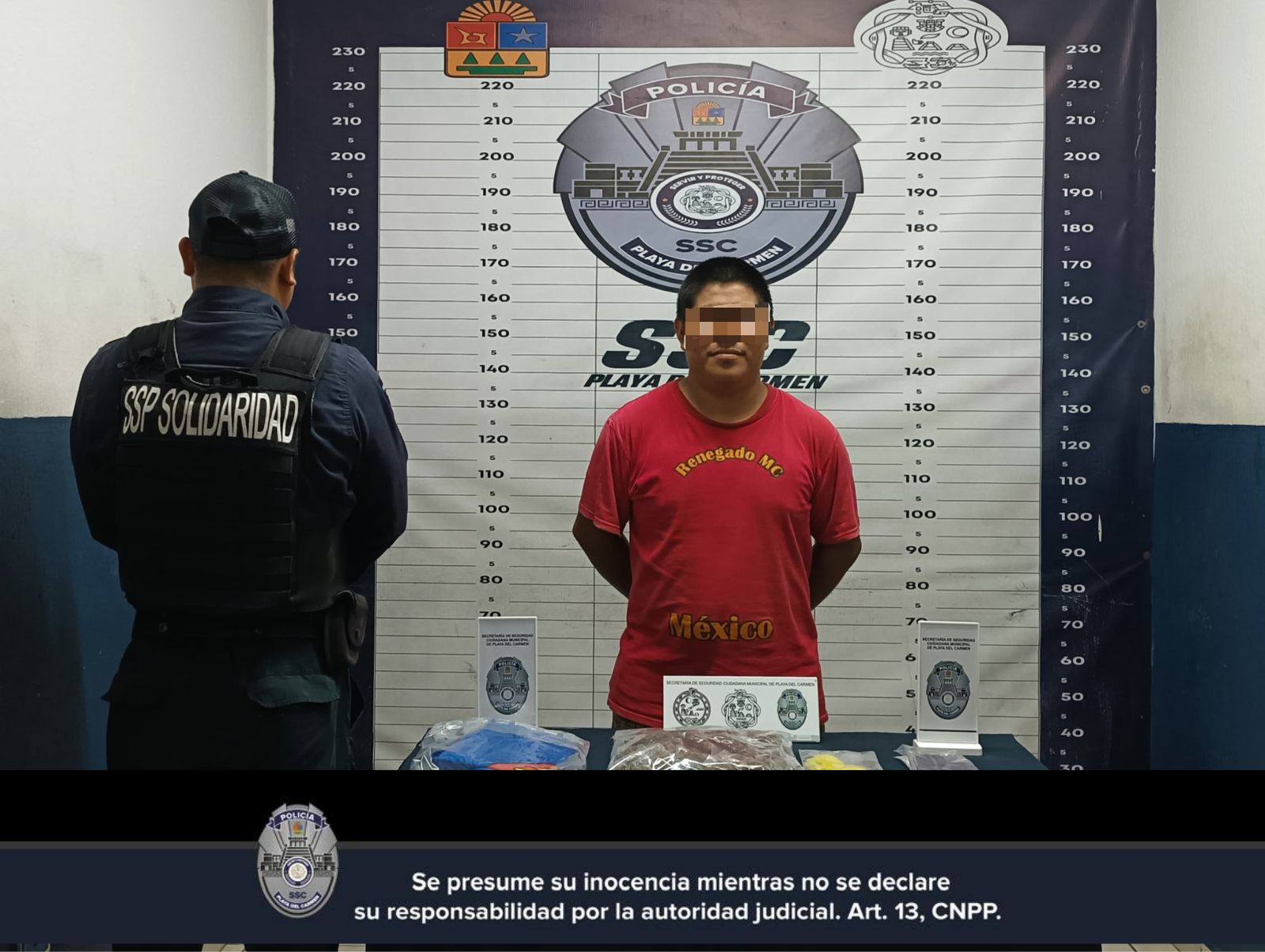 Playa del Carmen, a 05 de septiembre.- La Secretaría de Seguridad Ciudadana de Playa del Carmen informa la detención de un hombre en posesión de posibles narcóticos en la colonia irregular In House, como parte de los operativos permanentes de vigilancia y prevención del delito.