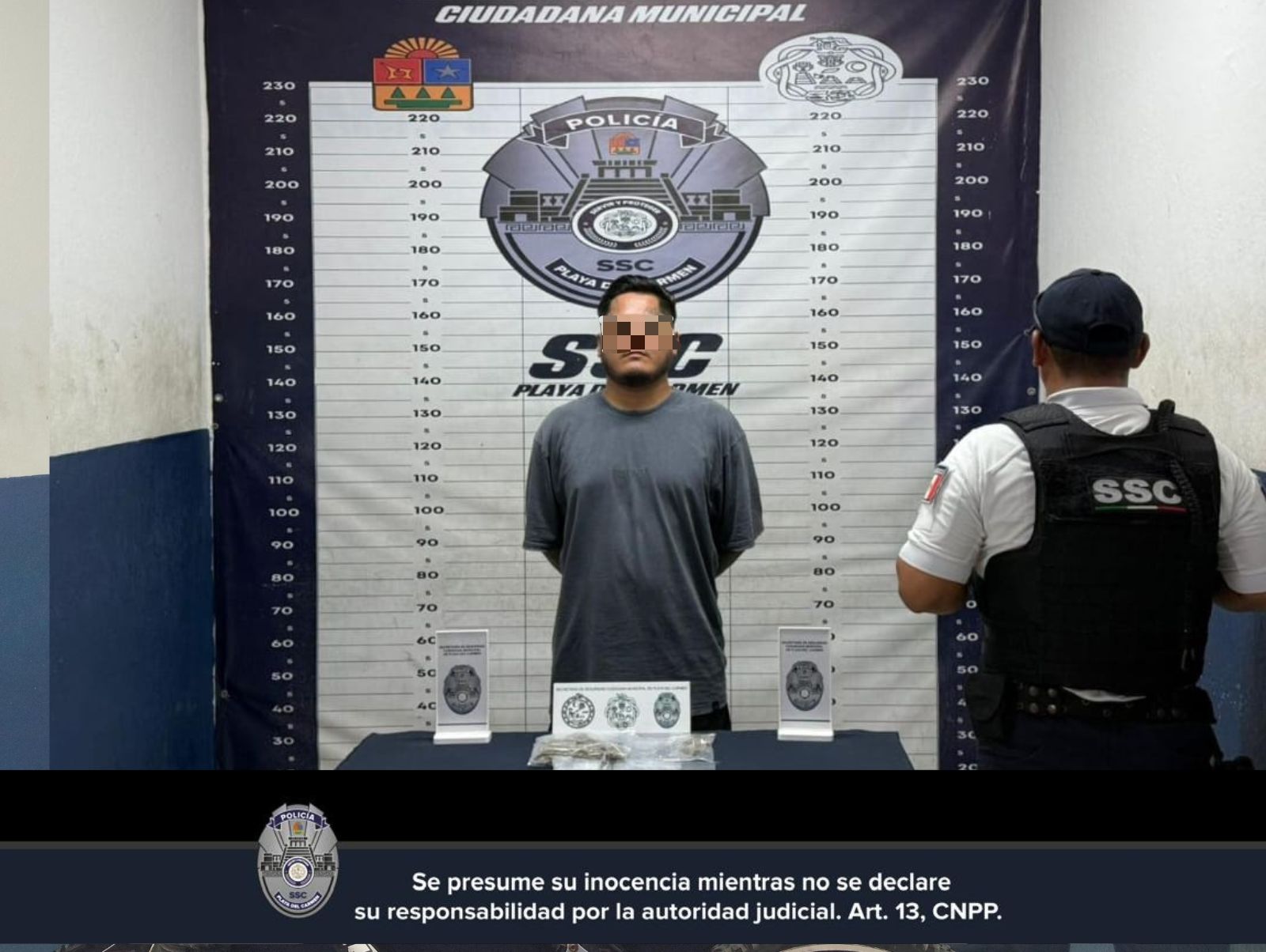 Playa del Carmen, Quintana Roo, 20 de septiembre de 2025.- Elementos de la Secretaría de Seguridad Ciudadana del Gobierno de Playa del Carmen aseguraron a Blas Adiel N., de 32 años de edad, originario de Oaxaca, por su probable participación en delitos contra la salud.