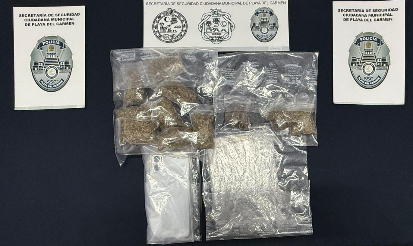 La detención ocurrió durante recorridos de vigilancia en la colonia Centro, donde el sujeto fue sorprendido ofreciendo a transeúntes envoltorios con vegetal verde y seco con características similares a la marihuana. Tras una inspección de seguridad, le fueron asegurados diversos envoltorios con posibles narcóticos, así como un teléfono celular.