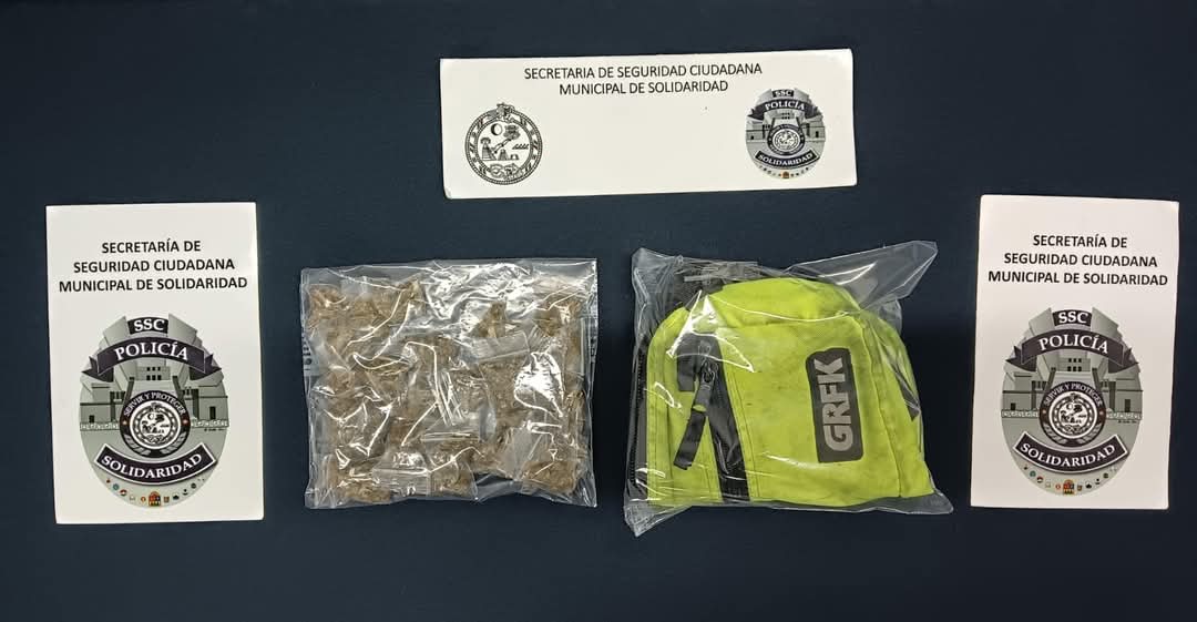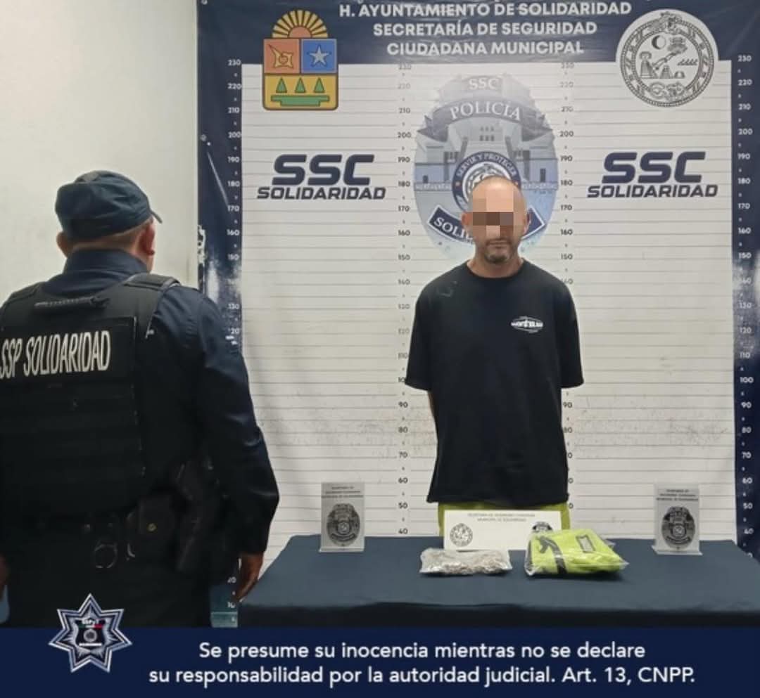 Más tarde, en el fraccionamiento Paseos de Xcacel, los oficiales observaron a un hombre manipulando varias bolsitas con posible droga, mismas que guardaba en una cangurera color verde fosforescente.