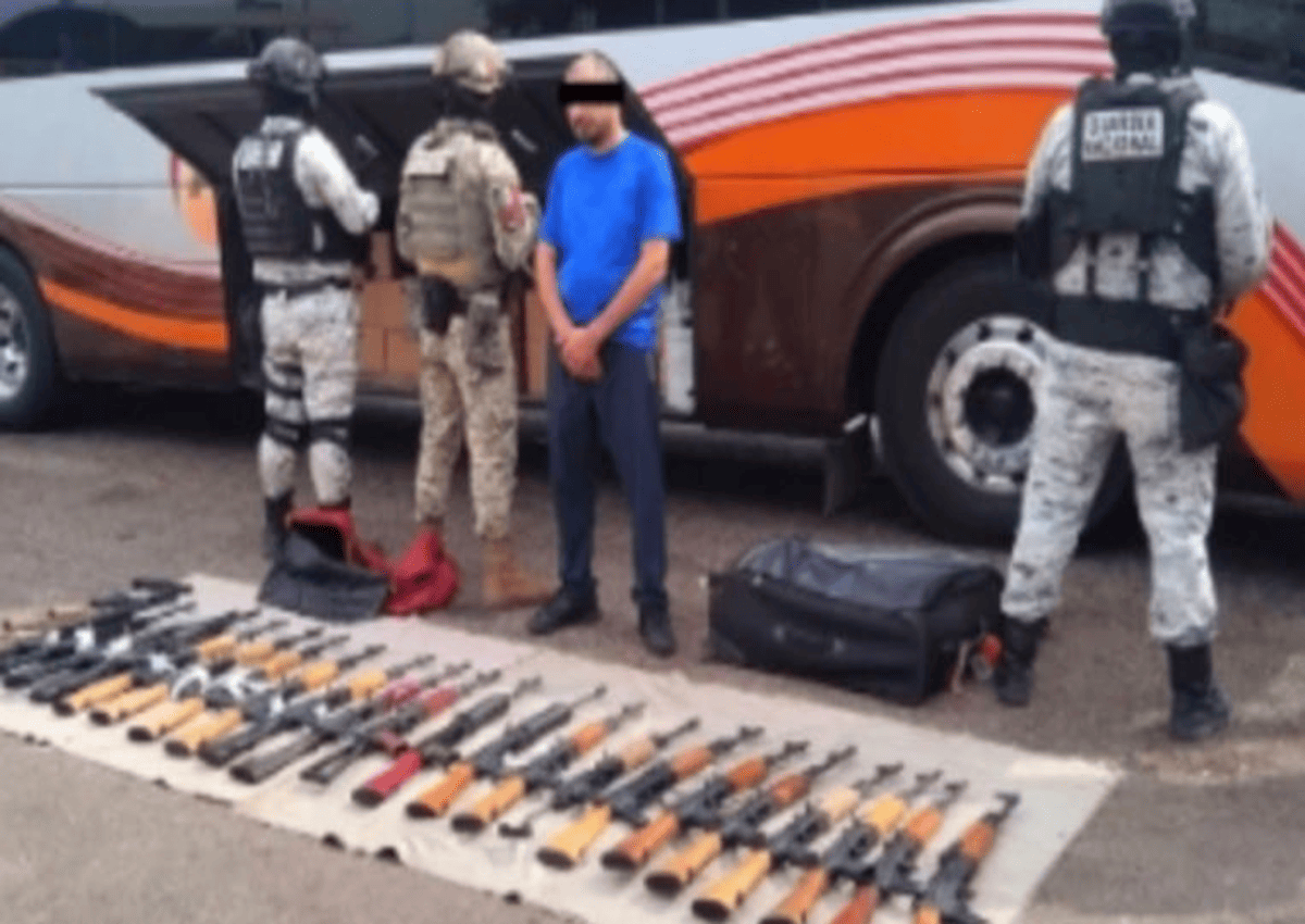 Aseguran arsenal con 22 fusiles AK-47 a bordo de autobús en Culiacán