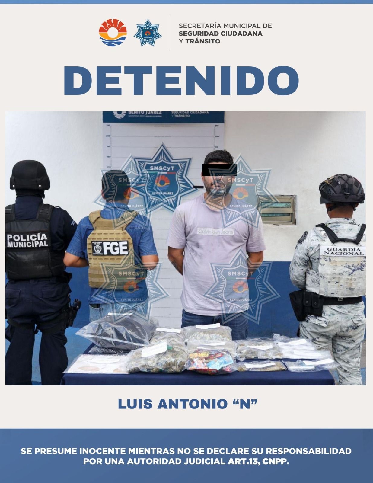 La detención ocurrió en la supermanzana 231, luego de que elementos de la Guardia Nacional, la Fiscalía General del Estado y la Secretaría Municipal de Seguridad Ciudadana y Tránsito detectaran un vehículo Mazda CX-30 gris que era conducido de forma negligente, ignorando semáforos y adoptando una actitud evasiva.