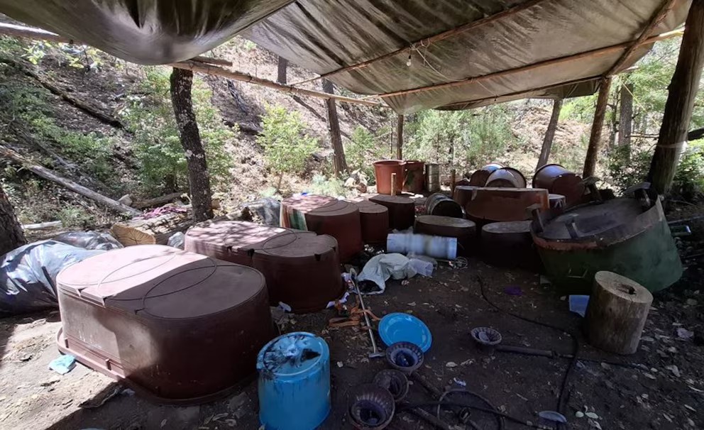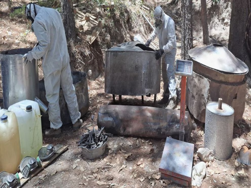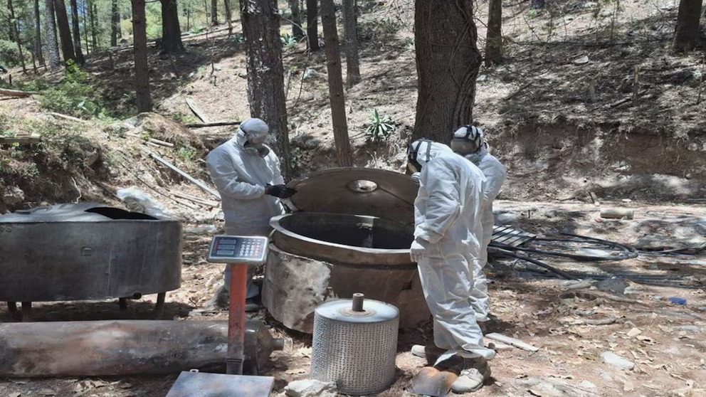 Efectivos de la Secretaría de la Defensa Nacional (Defensa) ubicaron y desarticularon un sitio en el que era almacenado material para la creación de la droga sintética mencionada.