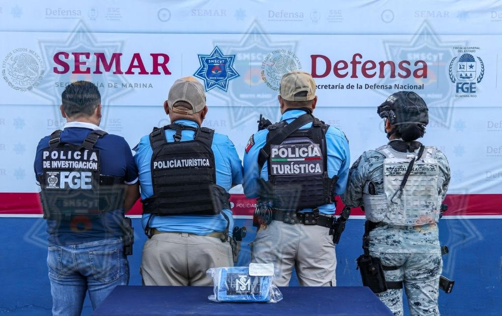 Cancún, 14 de enero. – En un operativo coordinado entre la Policía Turística, la Guardia Nacional y la Fiscalía General del Estado, se logró el aseguramiento de un paquete que contenía presunta cocaína en la zona hotelera de Cancún.