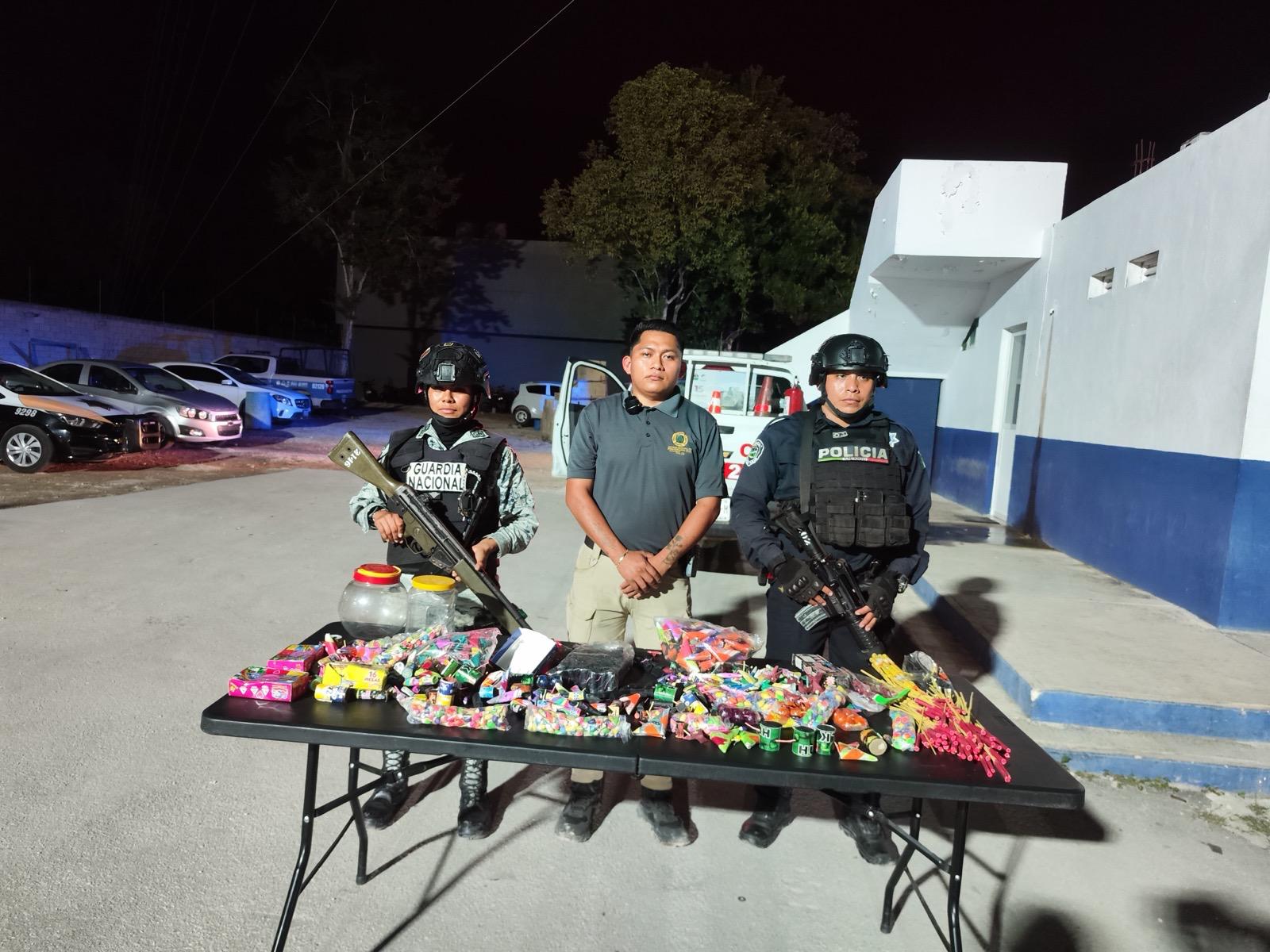 TULUM a 23 de diciembre .— Un total de siete kilos de pirotecnia fueron decomisados durante un operativo preventivo realizado en la colonia irregular 2 de Octubre, informó Rafa Domínguez Villanueva, director general de Protección Civil y Bomberos de Tulum. El aseguramiento forma parte de las acciones reforzadas durante la temporada decembrina para reducir riesgos asociados al uso, almacenamiento y venta clandestina de artefactos explosivos.
