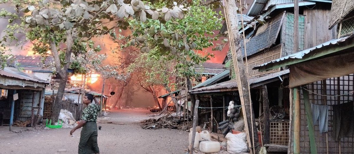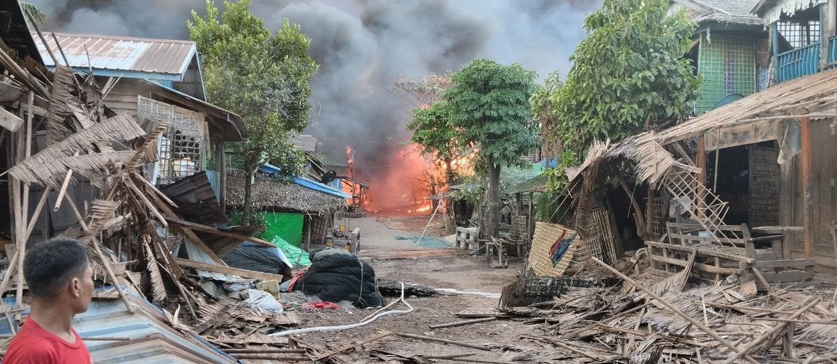 El bombardeo contra una aldea controlada por un grupo armado de minoría étnica causa un incendio masivo, mientras la comunicación con la zona sigue interrumpida