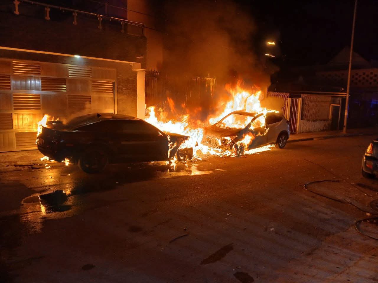 Los automóviles estaban estacionados frente a una vivienda en la colonia Gonzalo Guerrero y quedaron completamente calcinados