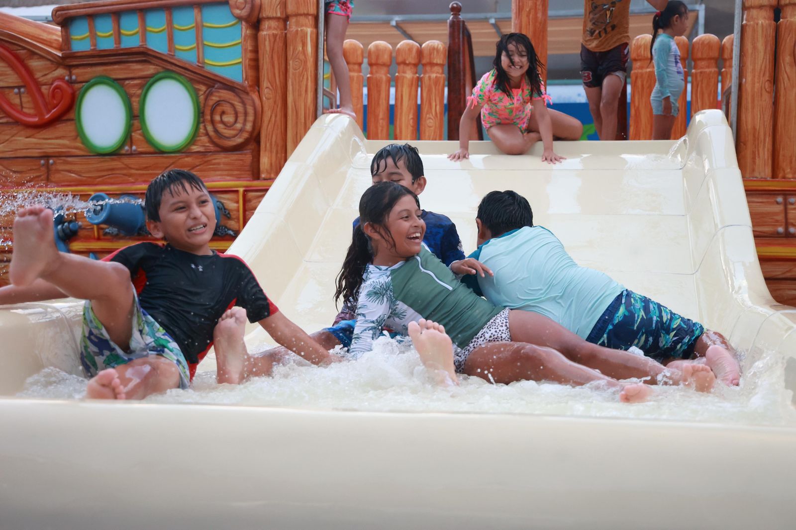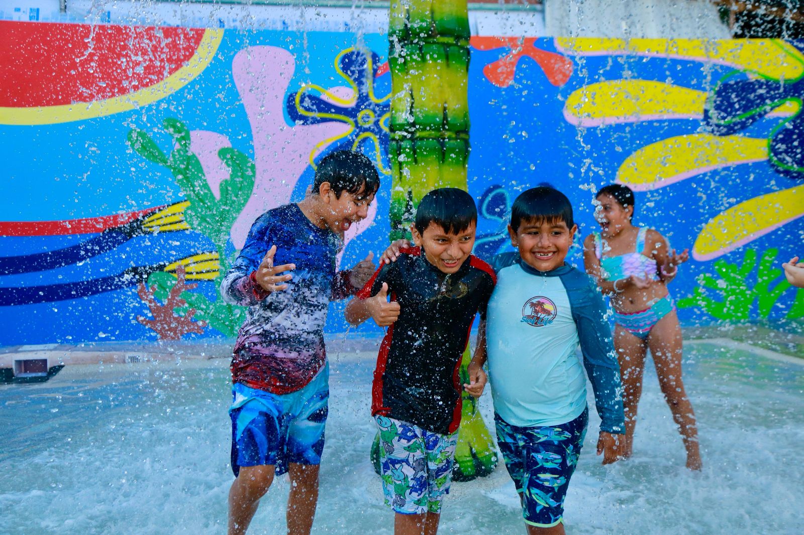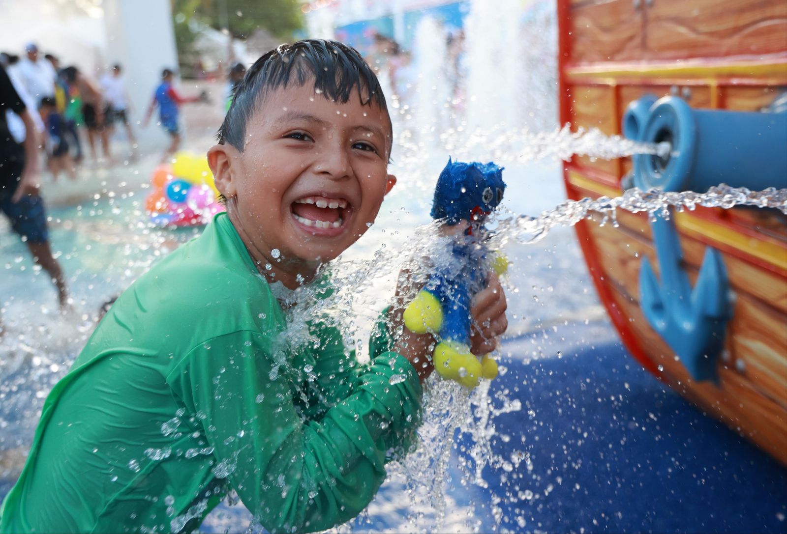 Después de la develación de la placa conmemorativa y el corte de listón, las niñas y niños, entraron con mucho entusiasmo al parque, disfrutando de los juegos de agua y los espacios de convivencia.