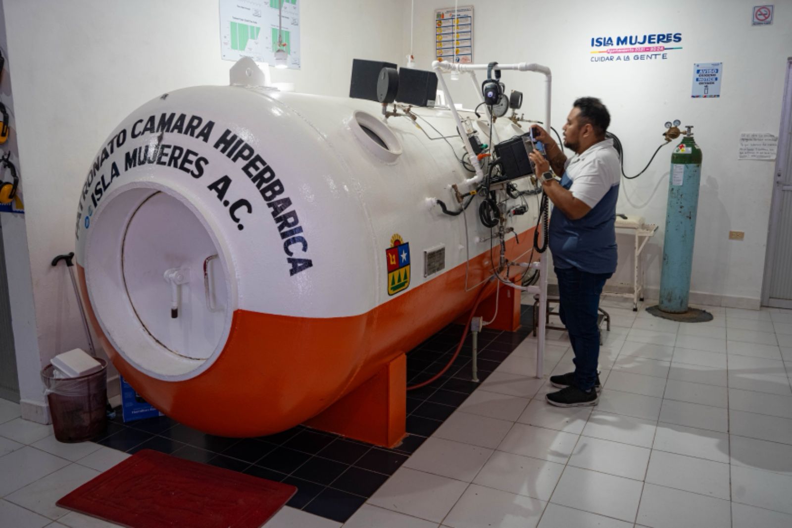 Isla Mujeres, Quintana Roo a 22 abril de 2025.– Con el firme compromiso de brindar un servicio óptimo y seguro tanto para la comunidad pesquera como para quienes requieren tratamientos médicos especializados, el Gobierno de Isla Mujeres, que encabeza la Presidenta Municipal Atenea Gómez Ricalde, realiza trabajos de mantenimiento preventivo y correctivo a la cámara hiperbárica.