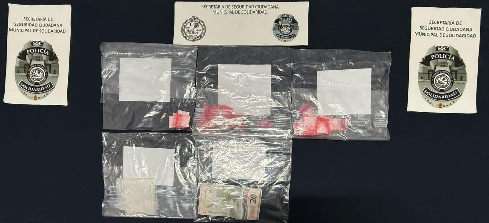 Playa del Carmen, 20 de febrero.- La Secretaría de Seguridad Ciudadana Municipal (SSCM) de Solidaridad detuvo a una persona del sexo masculino por la probable comisión de delitos contra la salud en la colonia irregular In House, asegurándole 32 envoltorios de posibles narcóticos y dinero en efectivo.