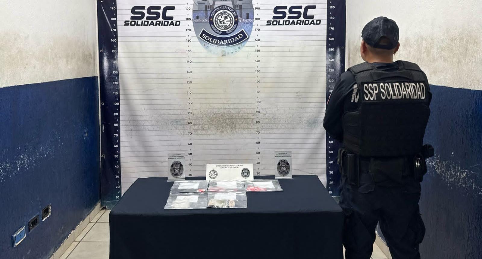 Playa del Carmen, 20 de febrero.- La Secretaría de Seguridad Ciudadana Municipal (SSCM) de Solidaridad detuvo a una persona del sexo masculino por la probable comisión de delitos contra la salud en la colonia irregular In House, asegurándole 32 envoltorios de posibles narcóticos y dinero en efectivo.