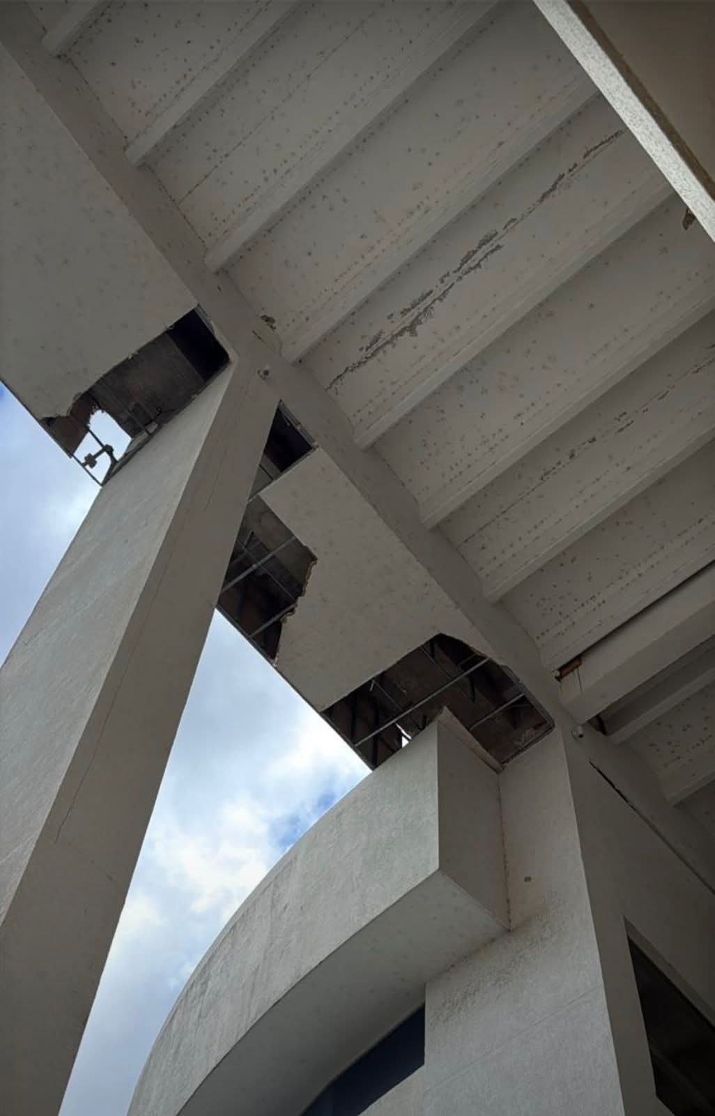 Y es que entre las quejas está la construcción del cuarto piso de la Facultad de Turismo detenida en obra negra desde agosto de 2023; salones y oficinas con goteras, plafones caídos, barandales oxidados y pisos dañados. Además, el elevador y la iluminación del estacionamiento no funcionan.