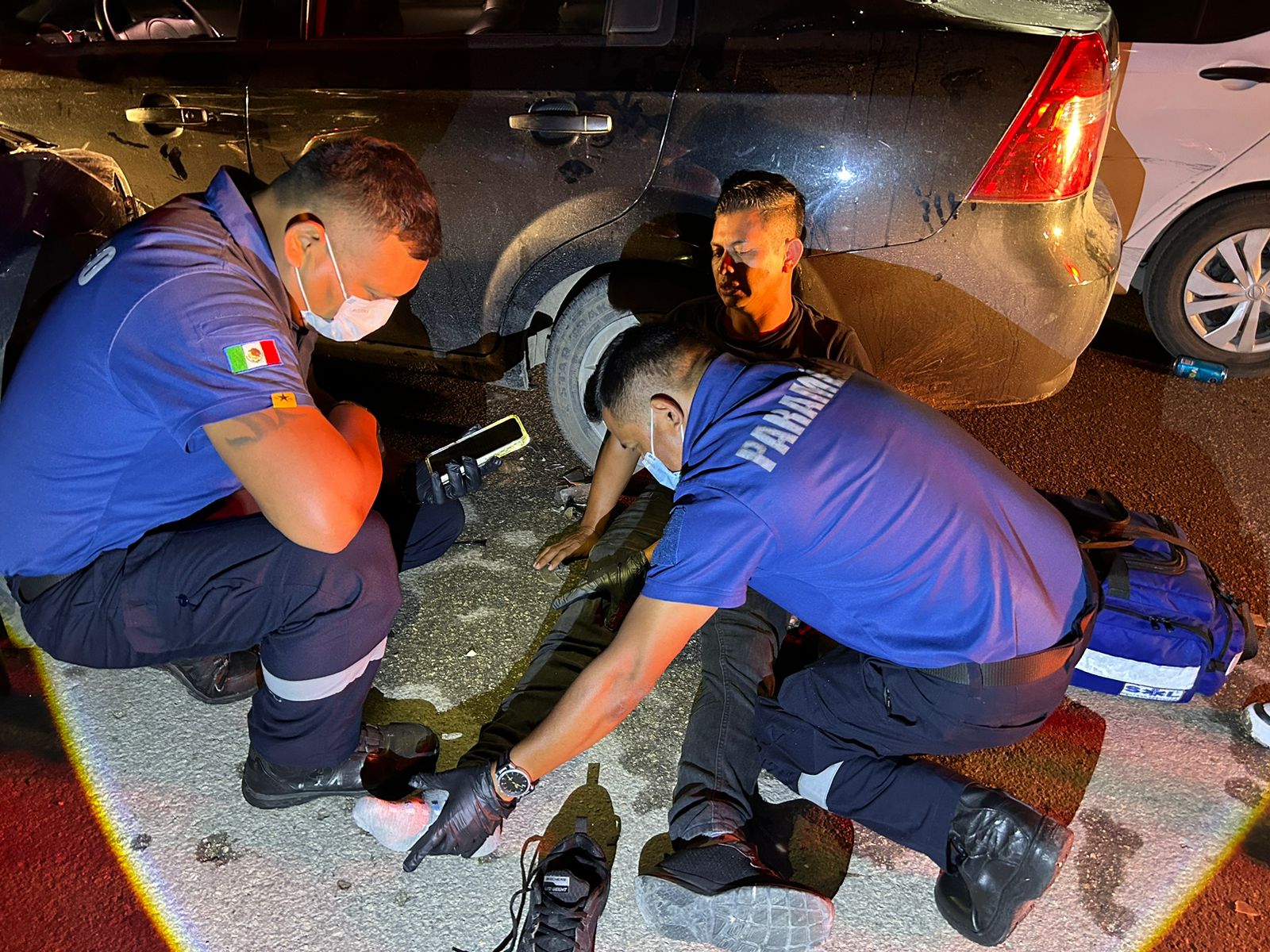 El incidente fue reportado al 911, movilizando a policías y paramédicos hacia la intersección de las calles Quetzal y Chan Chen. Al llegar al lugar, los equipos de emergencia encontraron a dos personas heridas.