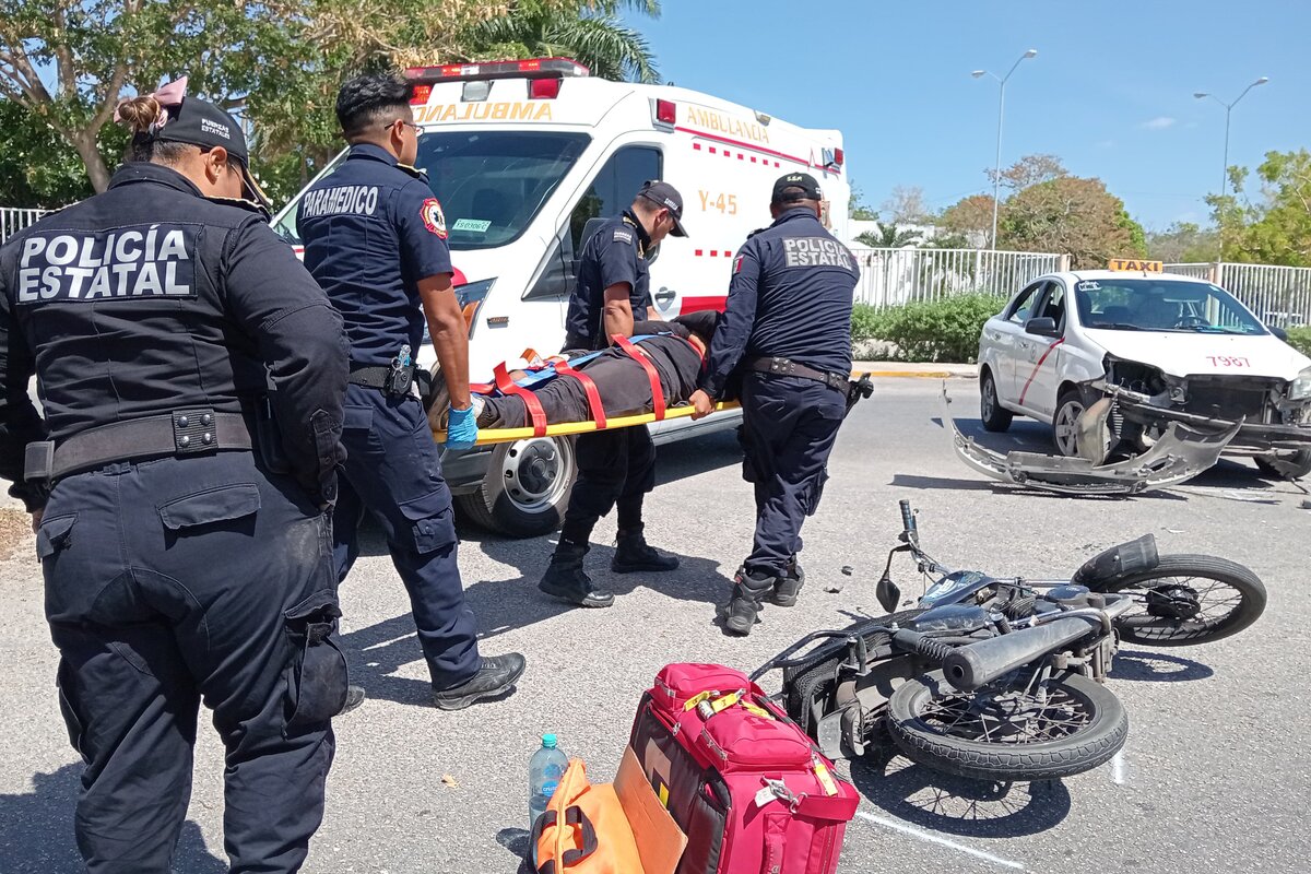 MÉRIDA, YUC., 20 de mayo.- Golpes y lesiones en todo el cuerpo, además de fractura en la pierna derecha, fue lo que sufrió un elemento de la SSP, que cuando se dirigía en moto a su hogar en el sur de Mérida, fue atropellado por un taxi justo sobre la avenida 60 frente al Hospital de la Amistad Corea-México.