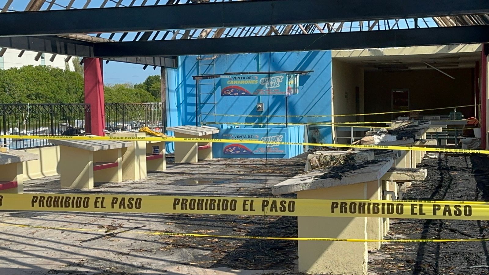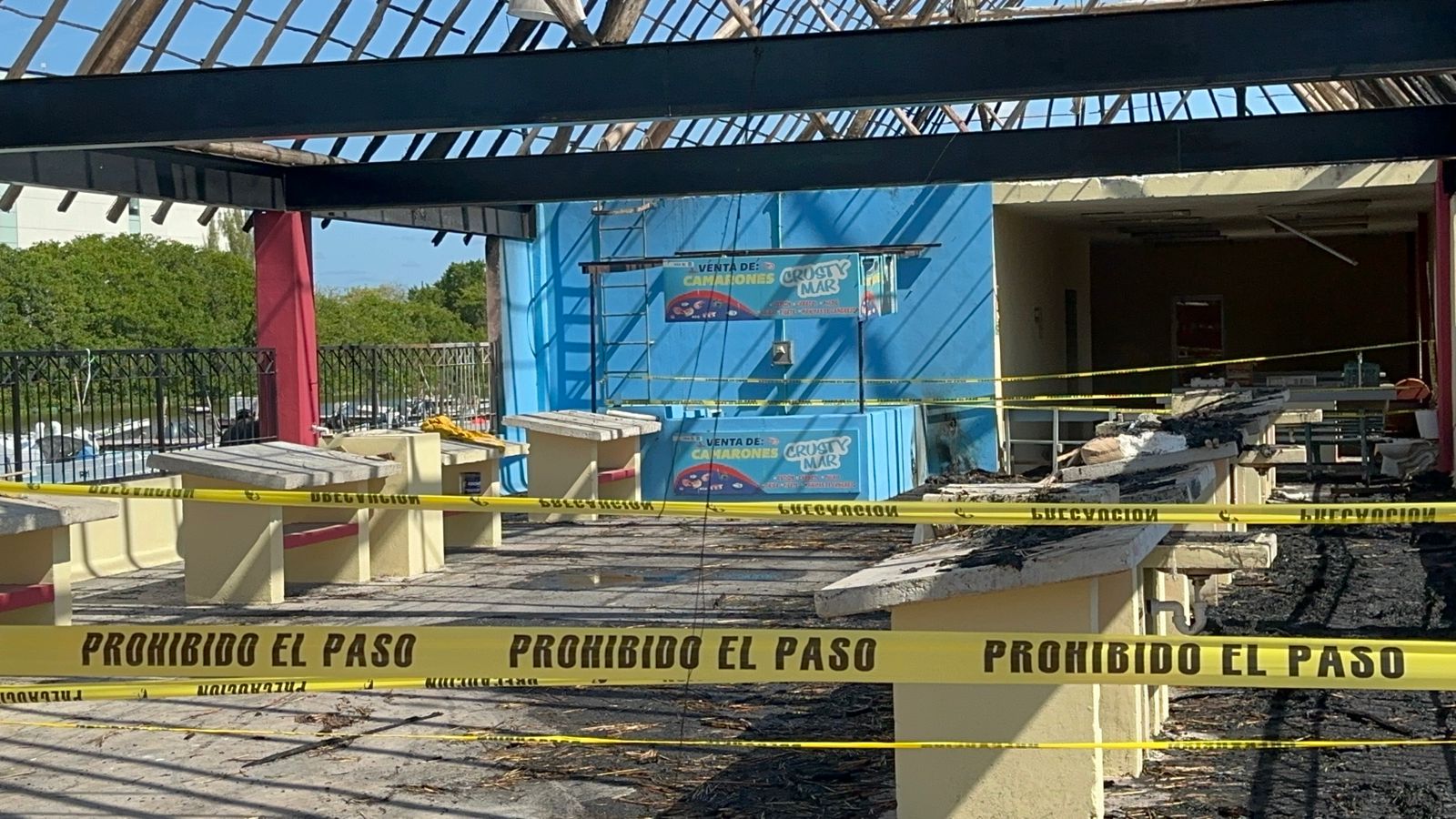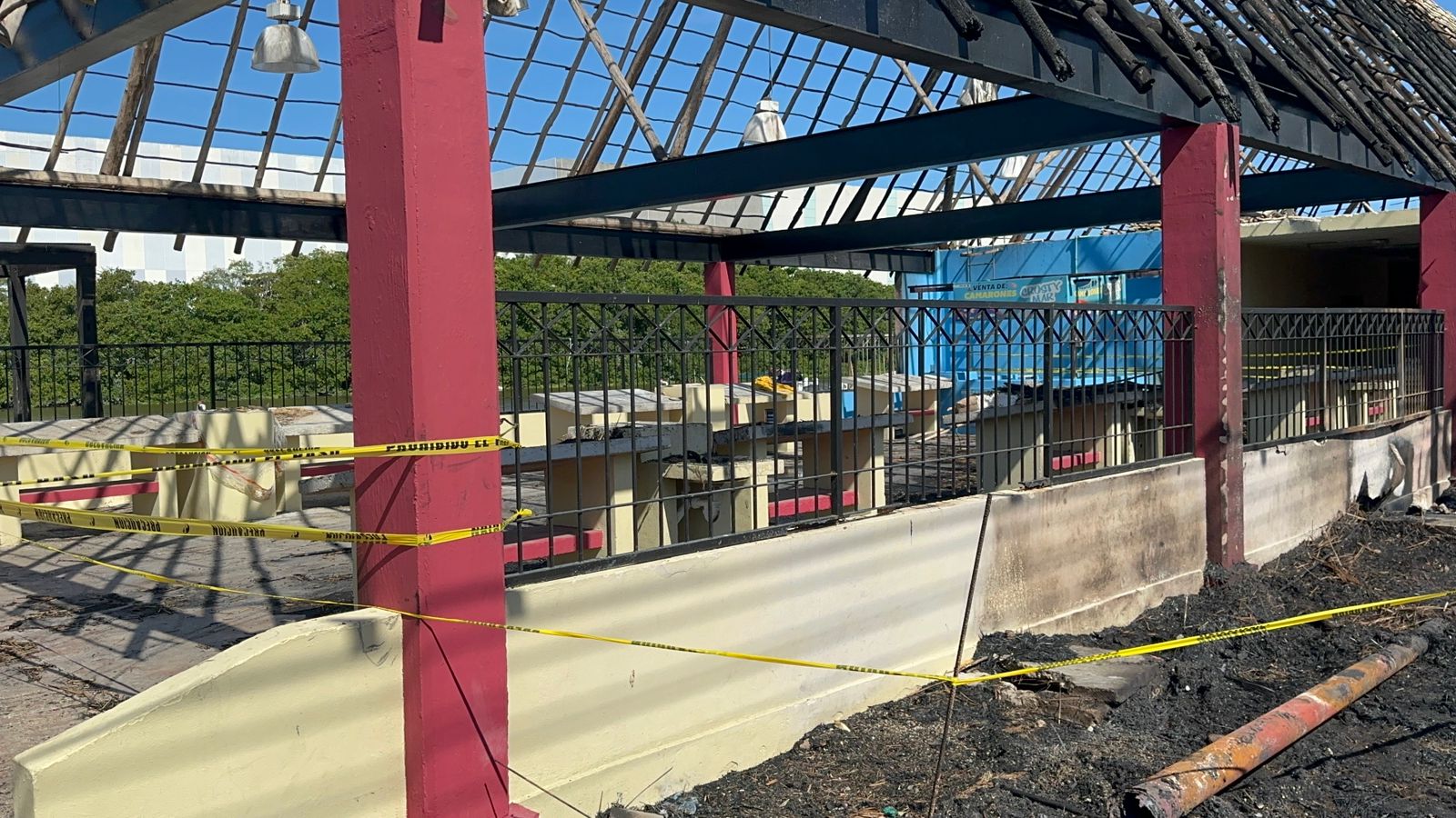 Este sábado 25 de enero, la palapa principal en la que se colocaban pescadores y familiares a vender los productos que sacaban del mar, permaneció acordonado y solamente quedaba la estructura metálica y postes de madera.