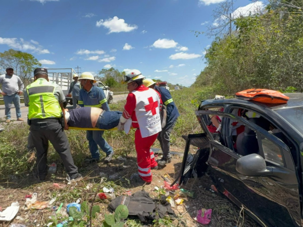 Tres Lesionados tras Fuerte Accidente Carretero en Felipe Carrillo Puerto; Fueron Rescatados entre los Fierros Retorcidos