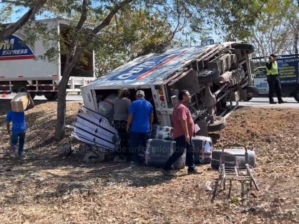 Volcado Acabo un Camión Porque el Chófer evito Chocar Contra un Vehiculo en Periférico de Mérida