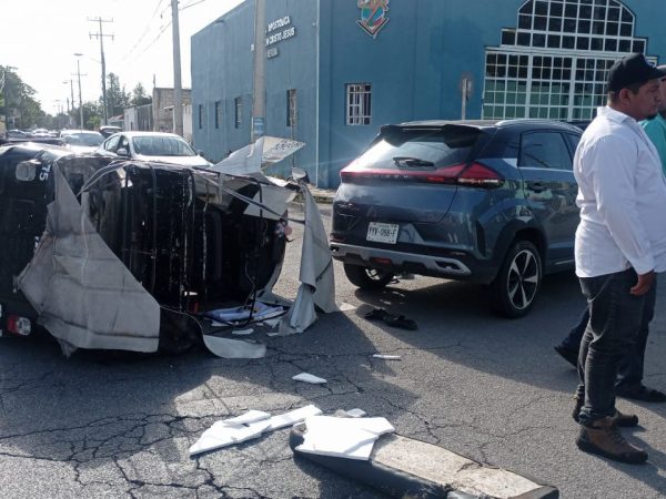 Mototaxi Acaba Volcado al Chocar Contra una Camioneta que no Respeta un Alto en Mérida