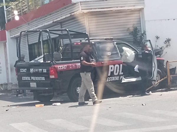Patrulla Choca Contra Taxi y se Estrella Contra un Muro en Cancún