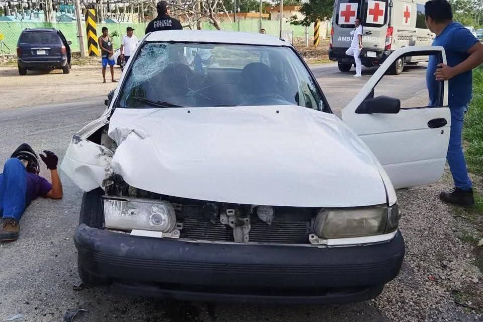 El percance ocurrió cuando un vehículo Nissan Tsuru con placas del estado de Quintana Roo, que circulaba de poniente a oriente, presuntamente invadió el carril y se impactó contra una motocicleta Italika. A consecuencia del choque, el conductor de la moto sufrió una fractura en la muñeca derecha, mientras que su acompañante también resultó con diversas lesiones.