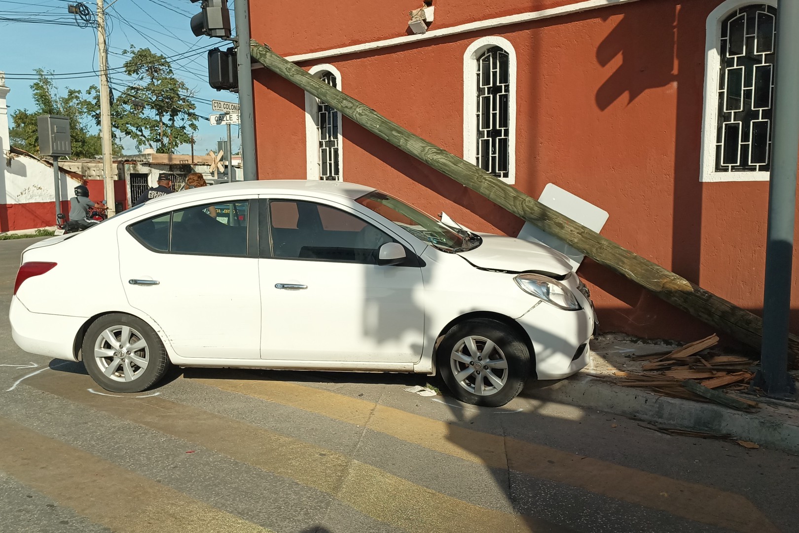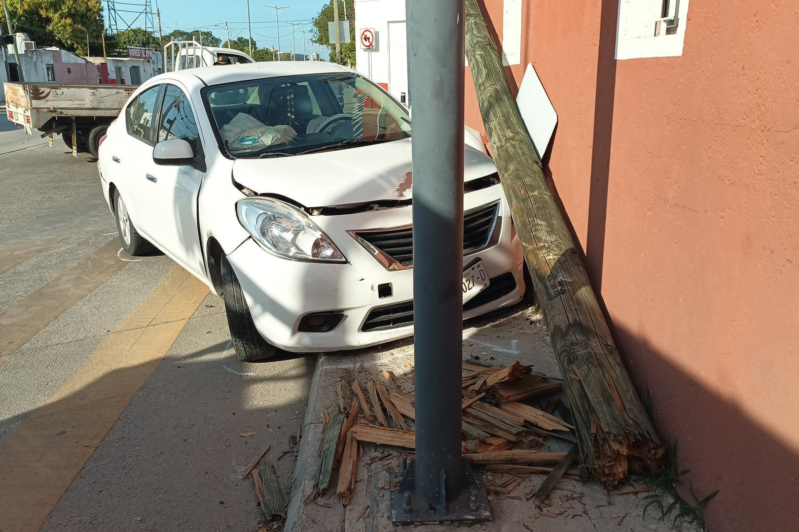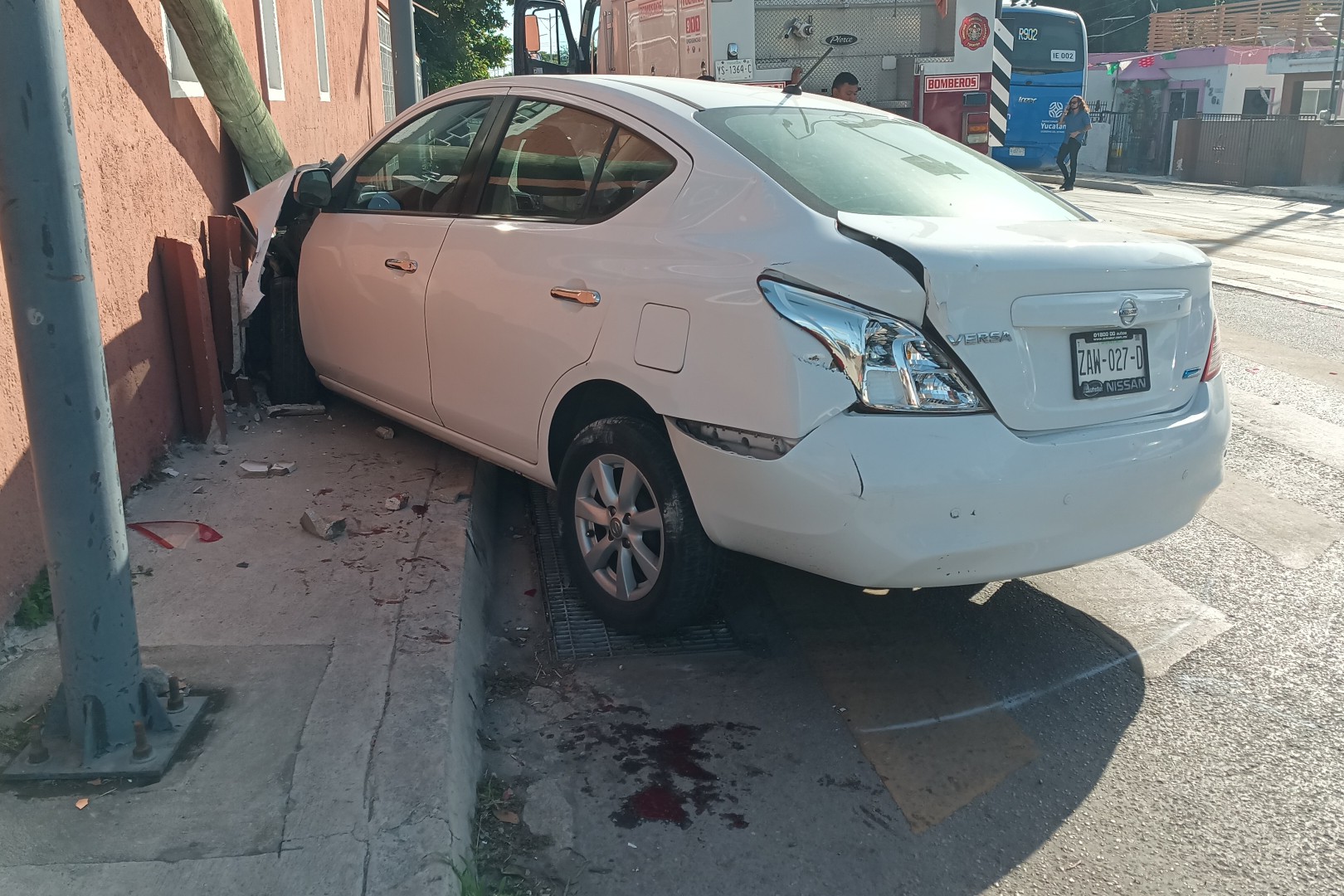 El chofer del autobús intentó evitar el impacto, pero terminó golpeando la parte trasera del Versa. El vehículo giró, subió a la banqueta y chocó contra un poste de madera de Telmex, derribándolo.