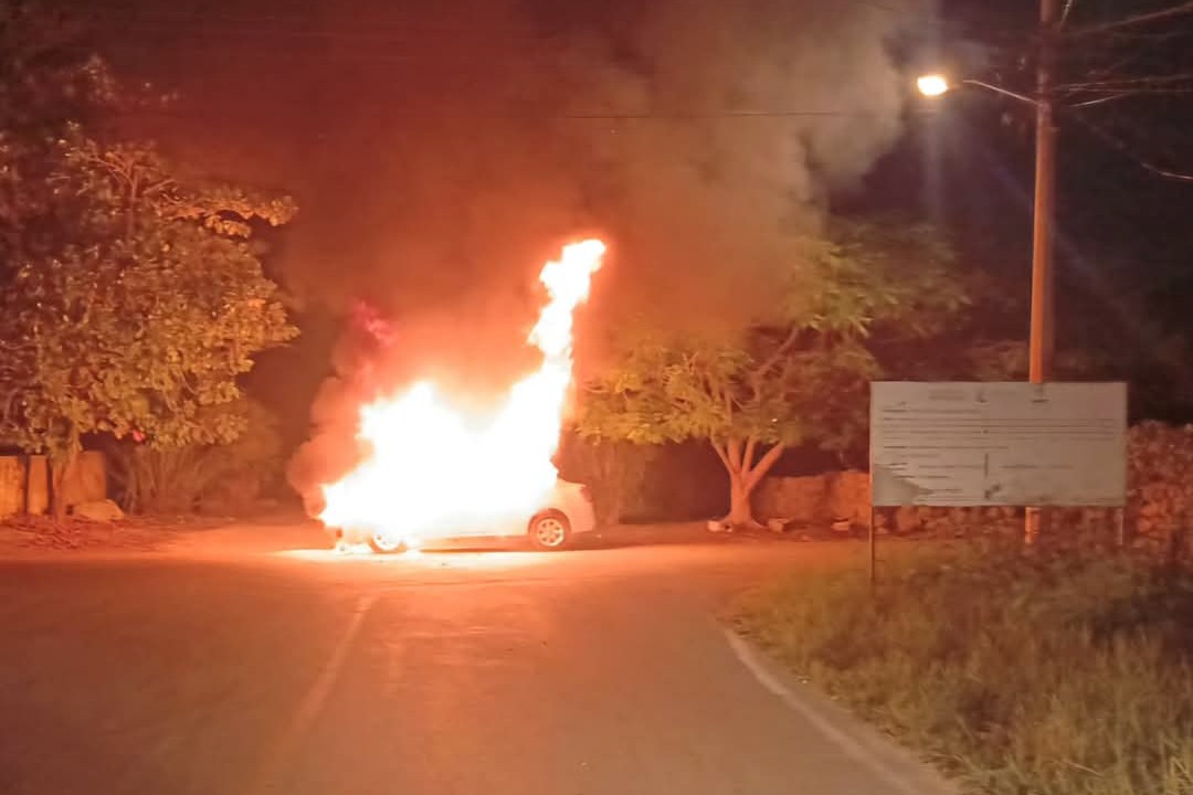 Auto se Incendia por un Corto Circuito en la Vía a la Comisaría de Hunxectamán