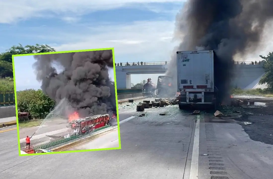 Un autobús de la línea ADO y un tractocamión con caja metálica chocaron y se incendiaron esta mañana de martes, al circular sobre la autopista Puebla-Veracruz, tramo Córdoba-La Tinaja, a la altura del kilómetro 33 en el municipio de Carrillo puerto.