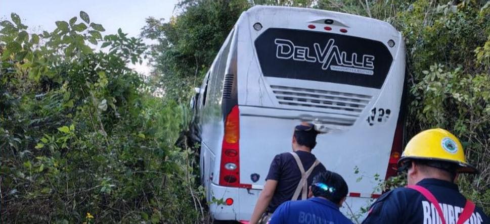 Un autobús de la empresa Del Valle terminó fuera de la vía con pasajeros a bordo; no hubo víctimas mortales y algunos ocupantes recibieron atención preventiva tras el accidente