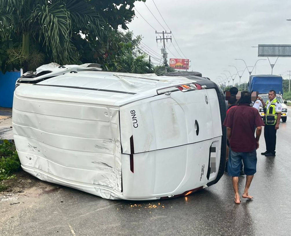 CANCÚN, 7 de enero.- Un aparatoso accidente ocurrió la mañana de este martes en la avenida José López Portillo a la altura de la colonia Avante, dejando como saldo la volcadura de un vehículo tras el impacto.