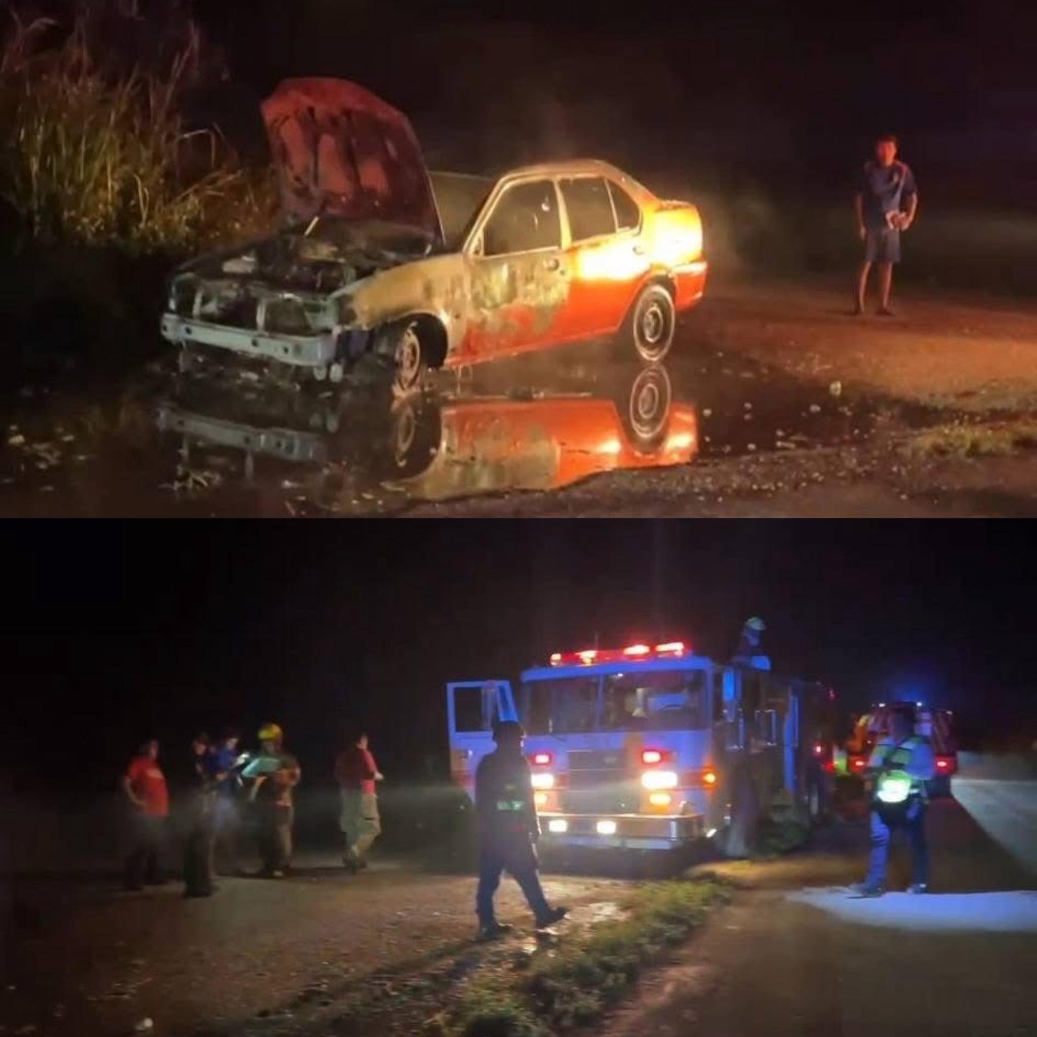 Chetumal, 12 de octubre.- Un automóvil terminó completamente calcinado durante la noche de este viernes en la carretera que conduce a la comunidad de Luis Echeverría, en las inmediaciones de Chetumal. El siniestro movilizó a elementos del Heroico Cuerpo de Bomberos y de la Secretaría de Seguridad Ciudadana, quienes atendieron el reporte de emergencia.