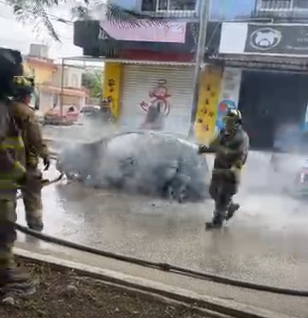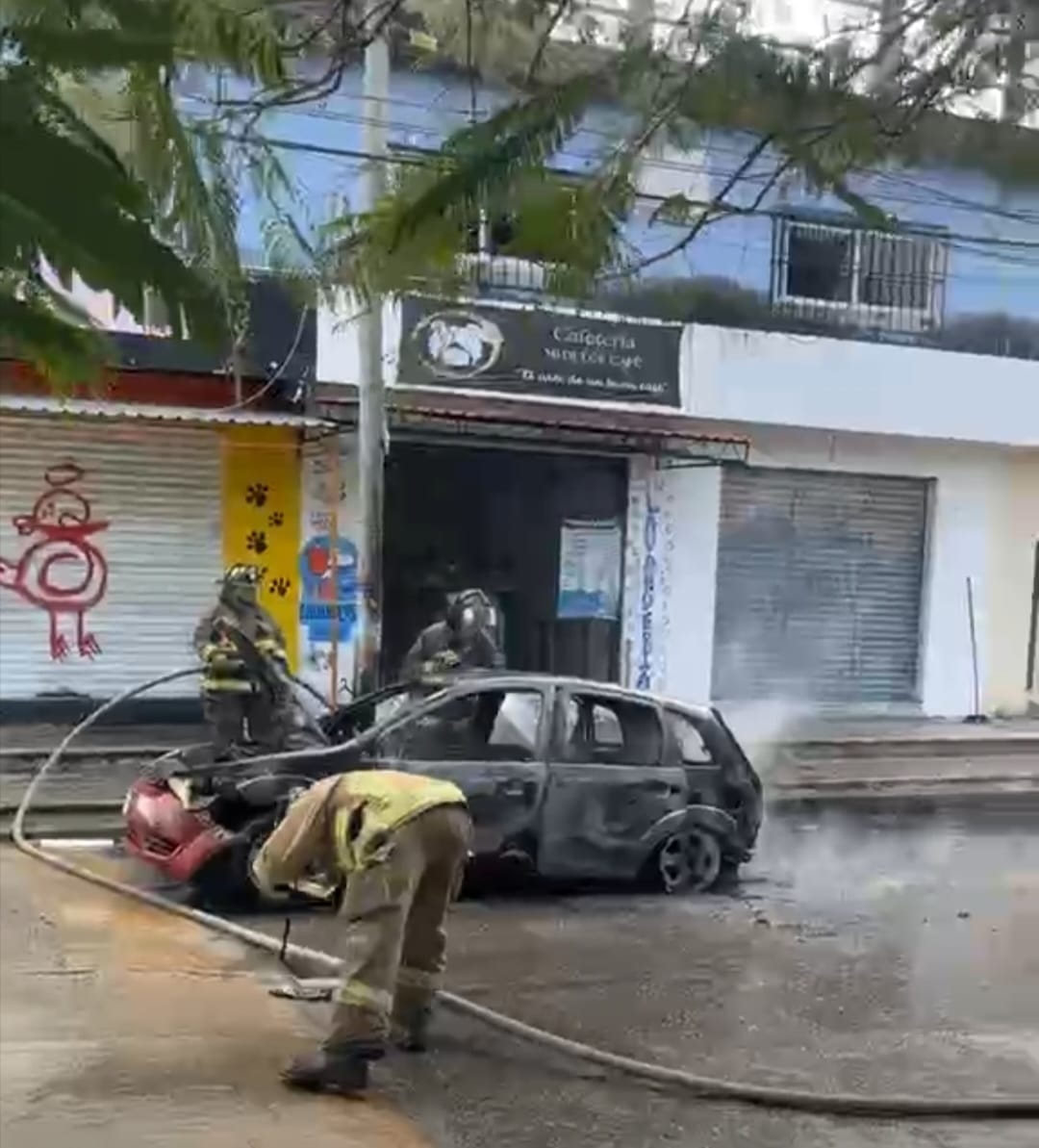 Elementos del Cuerpo de Bomberos acudieron de inmediato al lugar y lograron sofocar las llamas; sin embargo, el fuego consumió el automóvil en su totalidad.