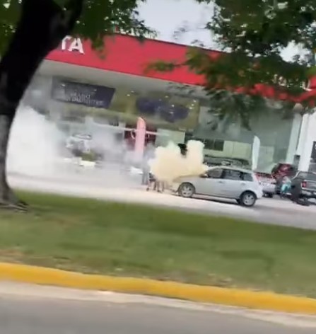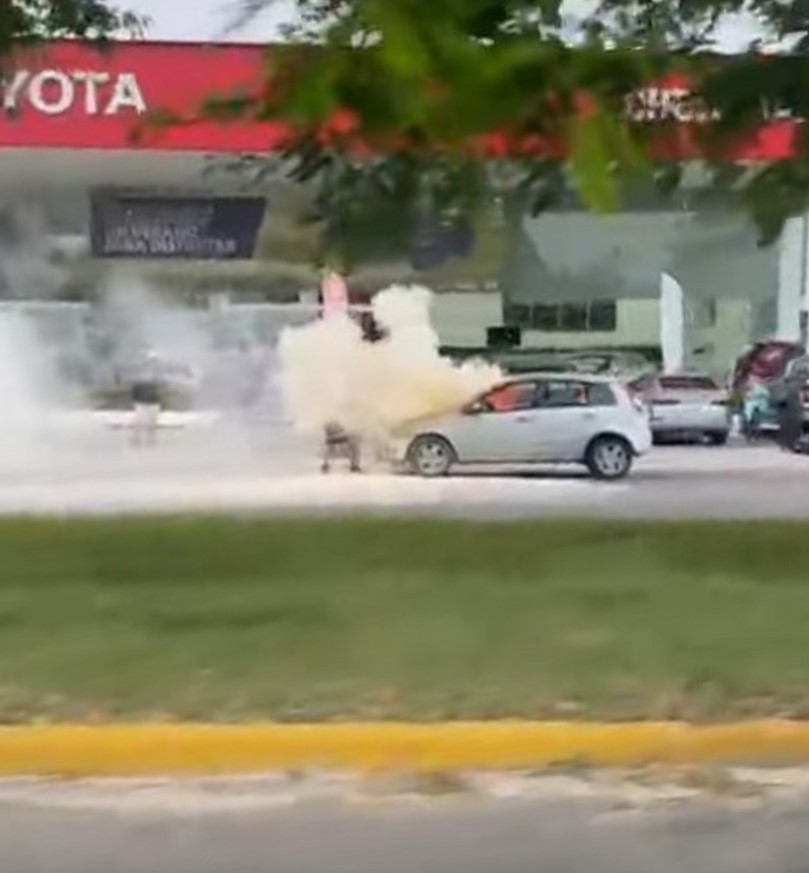 CHETUMAL, 29 de agosto. – La tarde de ayer, un incidente vial causó alarma en Chetumal cuando un Ford Fiesta gris comenzó a incendiarse mientras circulaba sobre la Avenida Insurgentes, entre las calles Palermo y Córcega, justo frente a una conocida agencia de autos. El hecho ocurrió alrededor de las 6:20 p.m. y, de acuerdo con los primeros reportes, se habría originado por una falla eléctrica en el motor.